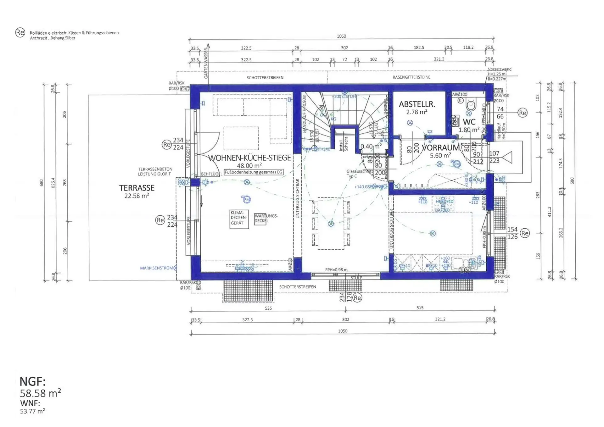 Die Ausstattung ist hochwertig, modern und auf Komfort und Energieeffizienz bedacht. Das Haus verfügt über eine hochwertige Aluminiumtüre, dreifach verglaste Fenster, Klimaanlage, Luftwärmepumpe , Innenstiege in Holzausführung und vieles mehr. Ausstattungsveränderungen sind je nach Baufortschritt noch möglich.