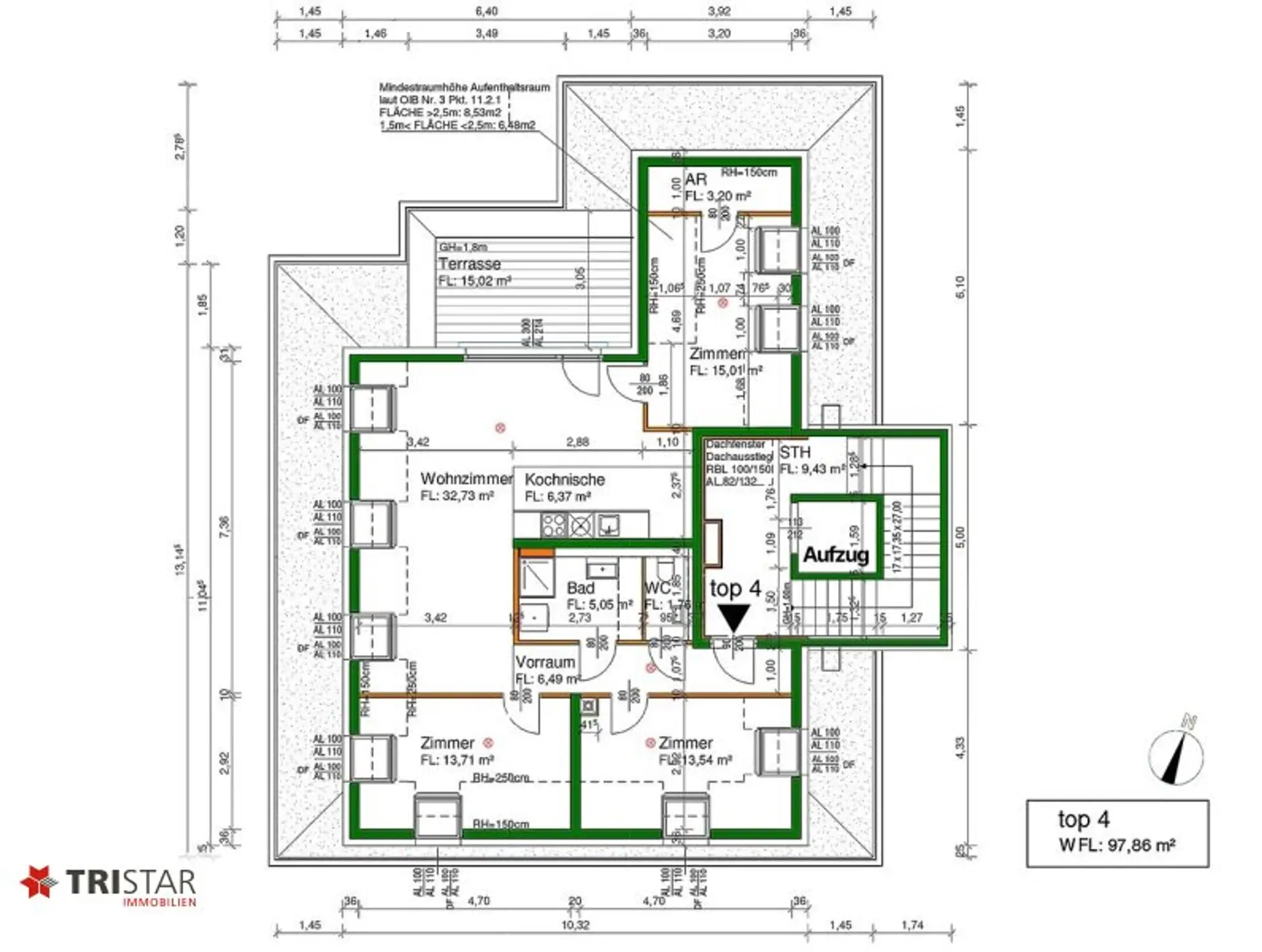 TOP T4.4: ca. 98 m² (4 Zimmer) Terrasse ca. 15 m² - Dachgeschoss