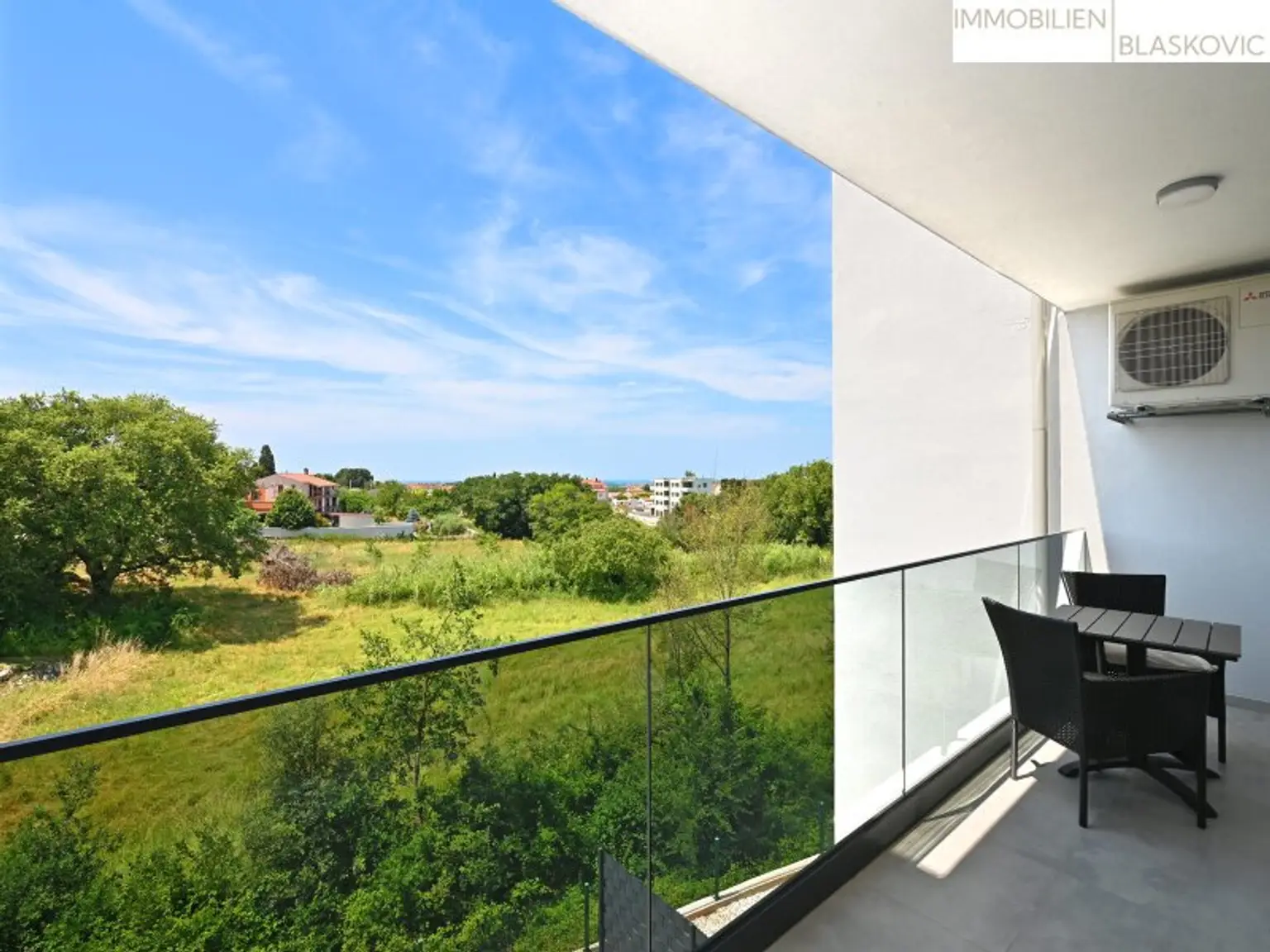• einer geräumigen Loggia von 8,3 m2 mit offenem Meerblick. Die Loggia bietet absolute Privatsphäre gegenüber den Nachbarn.