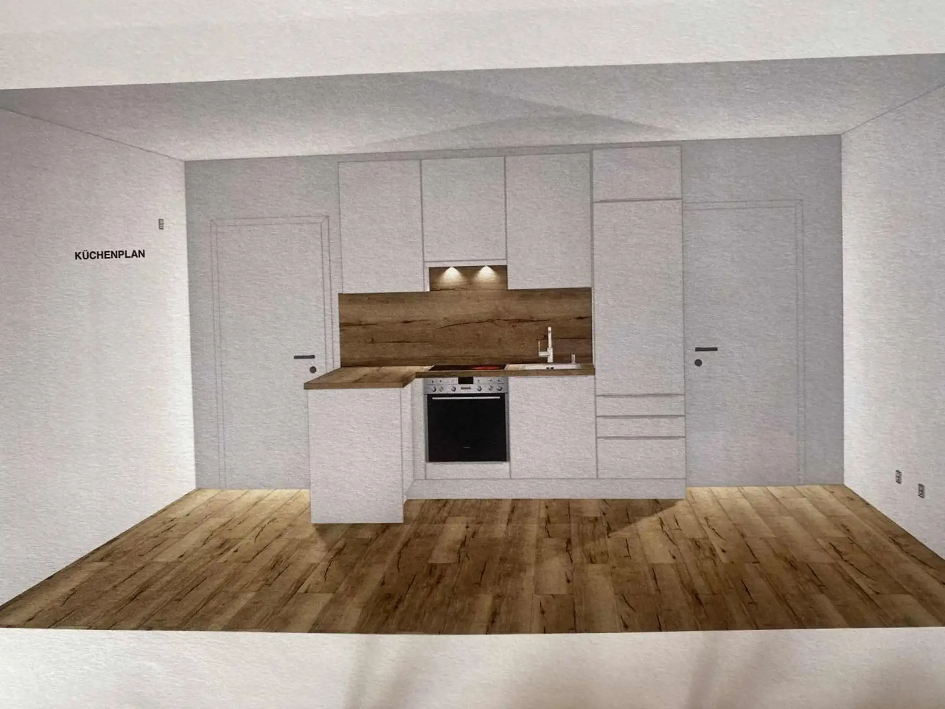 - Wohnküche mit Einbauküche und Echtholzparkett