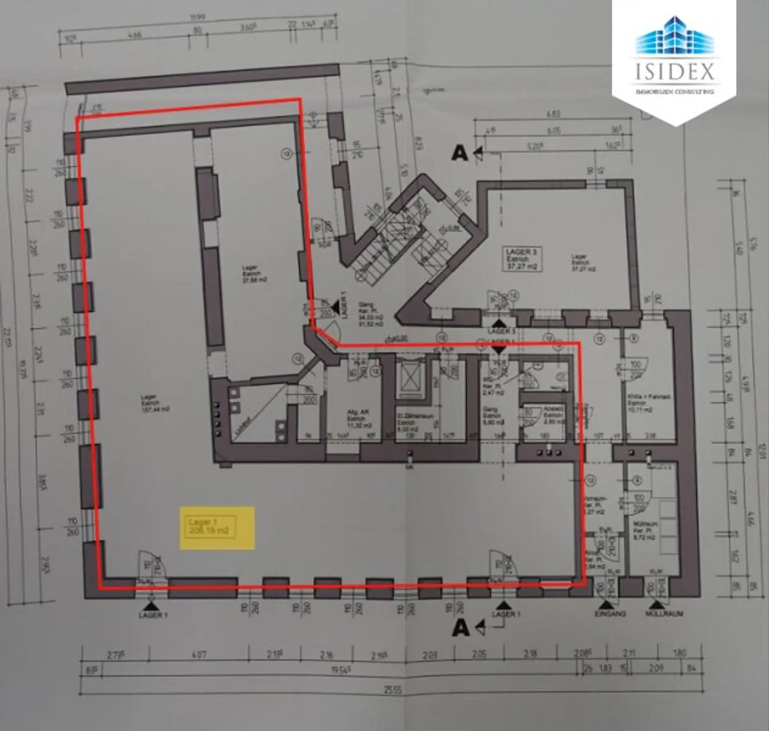 Lager 1: ca. 206,19 m², unbefristet vermietet, Nettomiete p.a. € 17.319,96, Kaufpreis € 290 500,00 (wird derzeit als Moschee genutzt)
