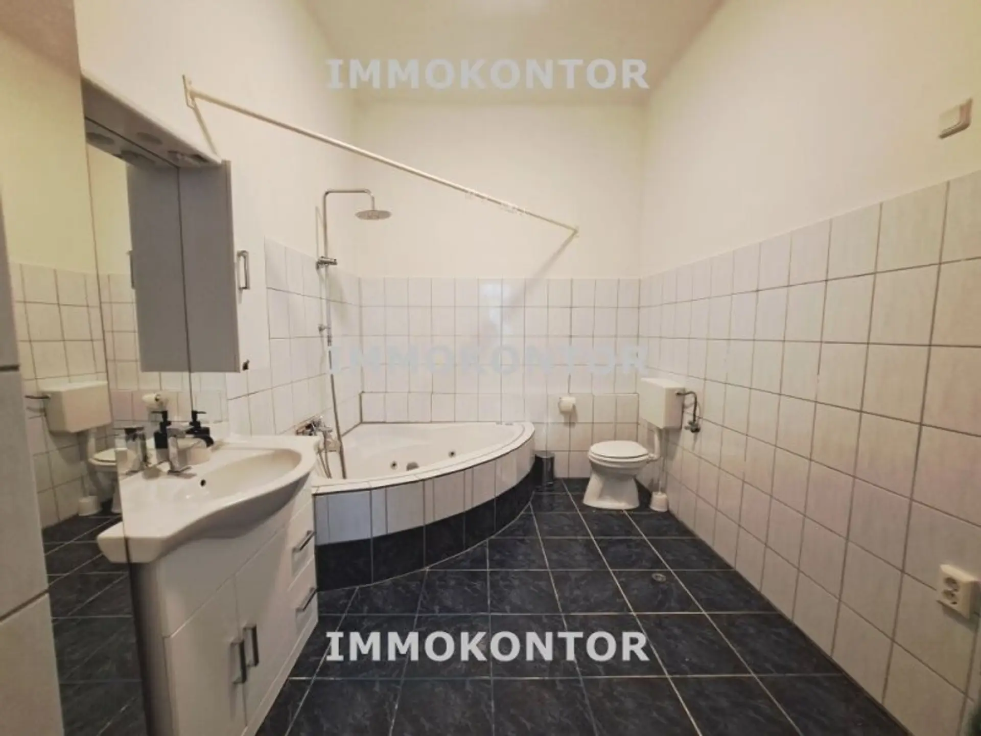 - Wannenbadezimmer mit WC und Platz für eine Waschmaschine