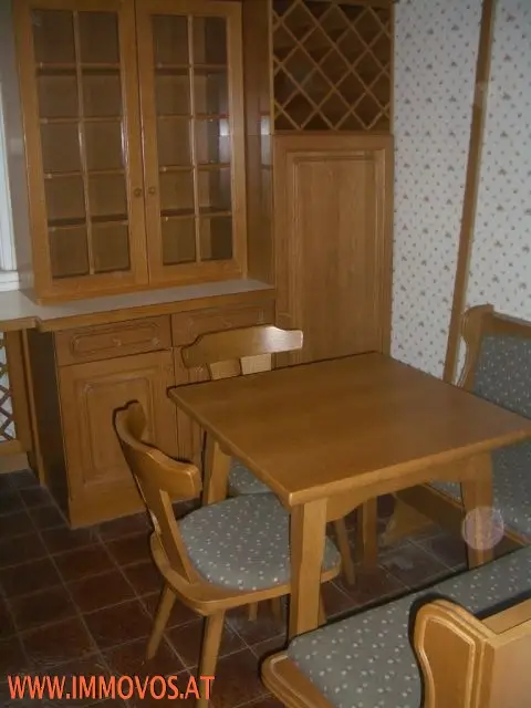 Die Küche ist möbliert und bietet neben den nötigen Geräten ein Esseck.