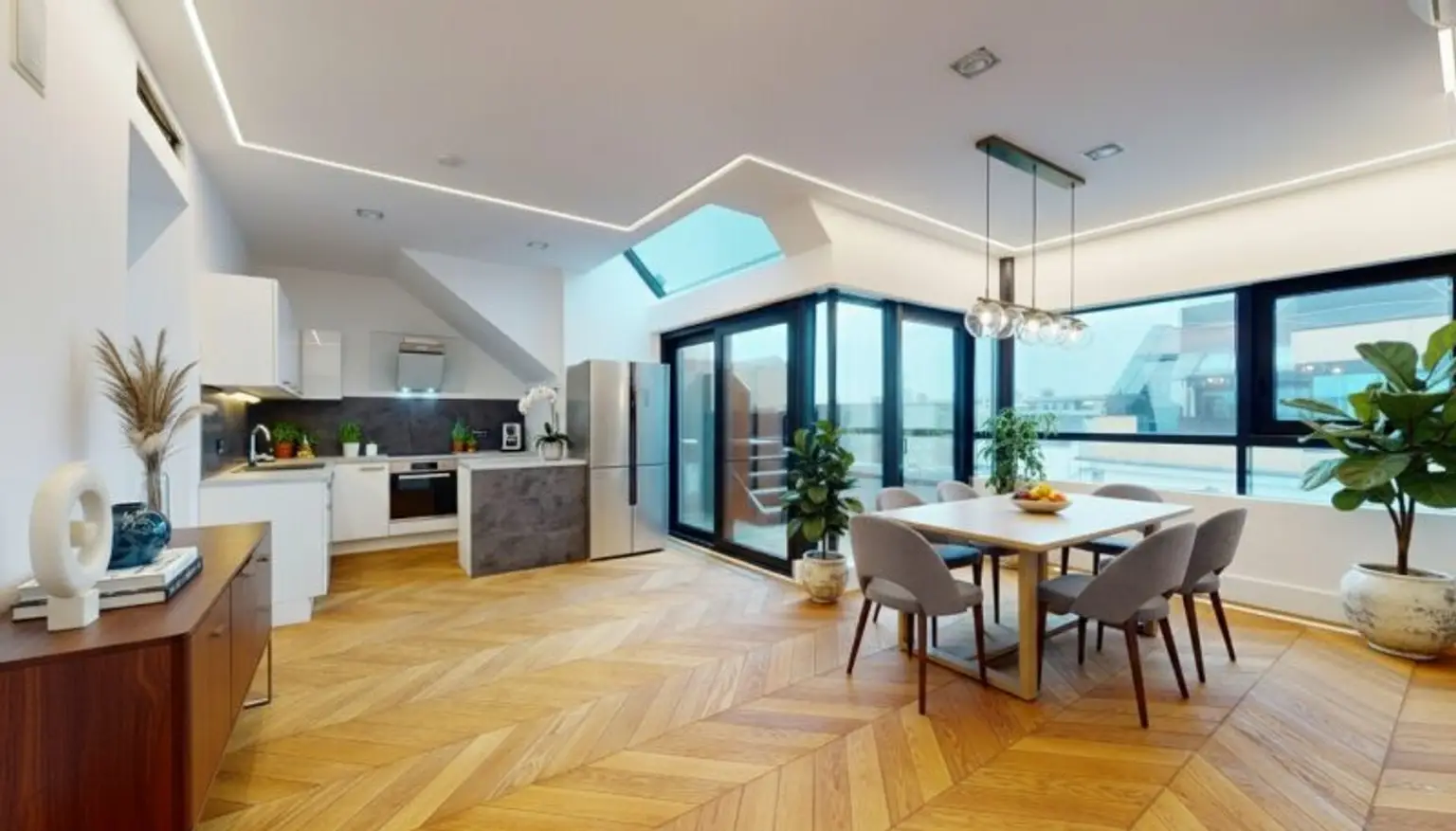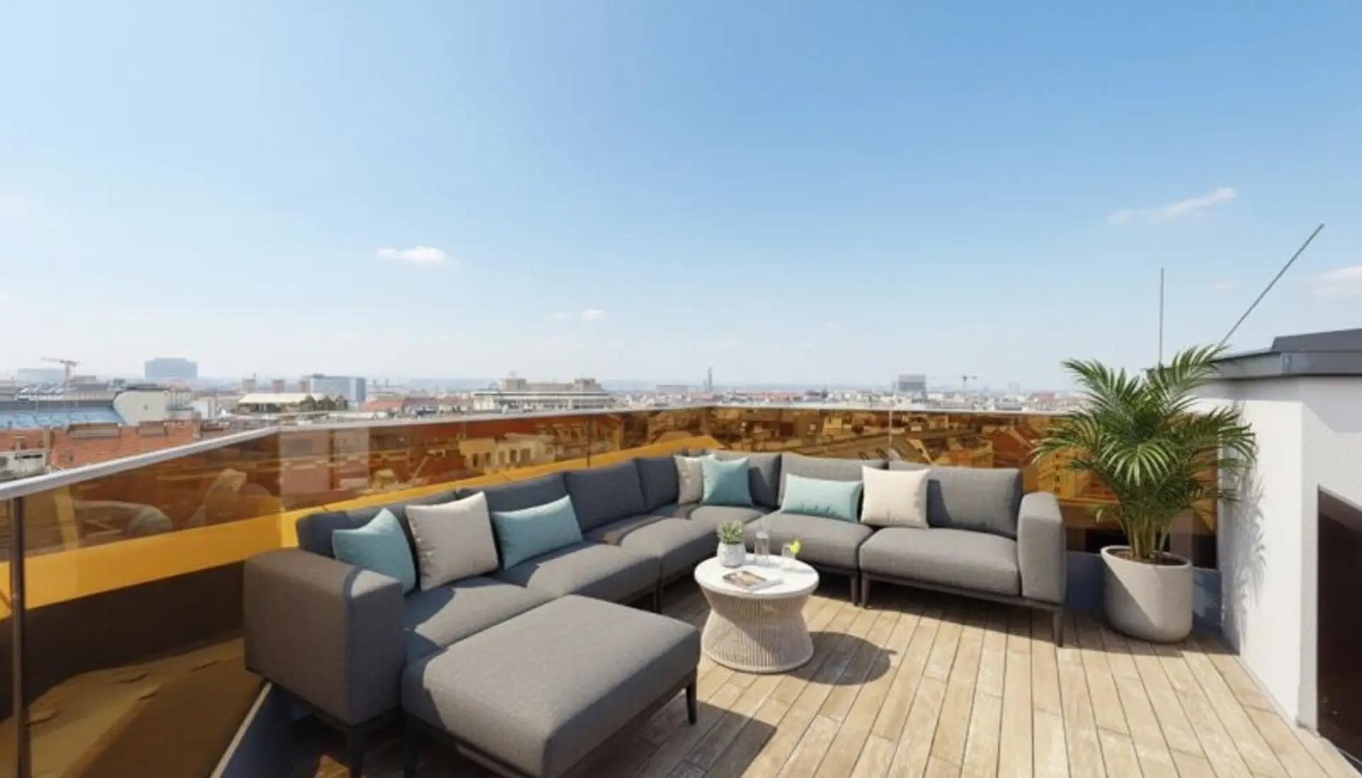 Das Krönchen obendrauf: insgesamt 80,15 m² Terrassenfläche, inklusive einer sensationell großzügigen Dachterrasse mit Rundumblick, perfekt für Sonnenuntergänge, Dinner-Abende oder entspanntes City-Living im Freien.