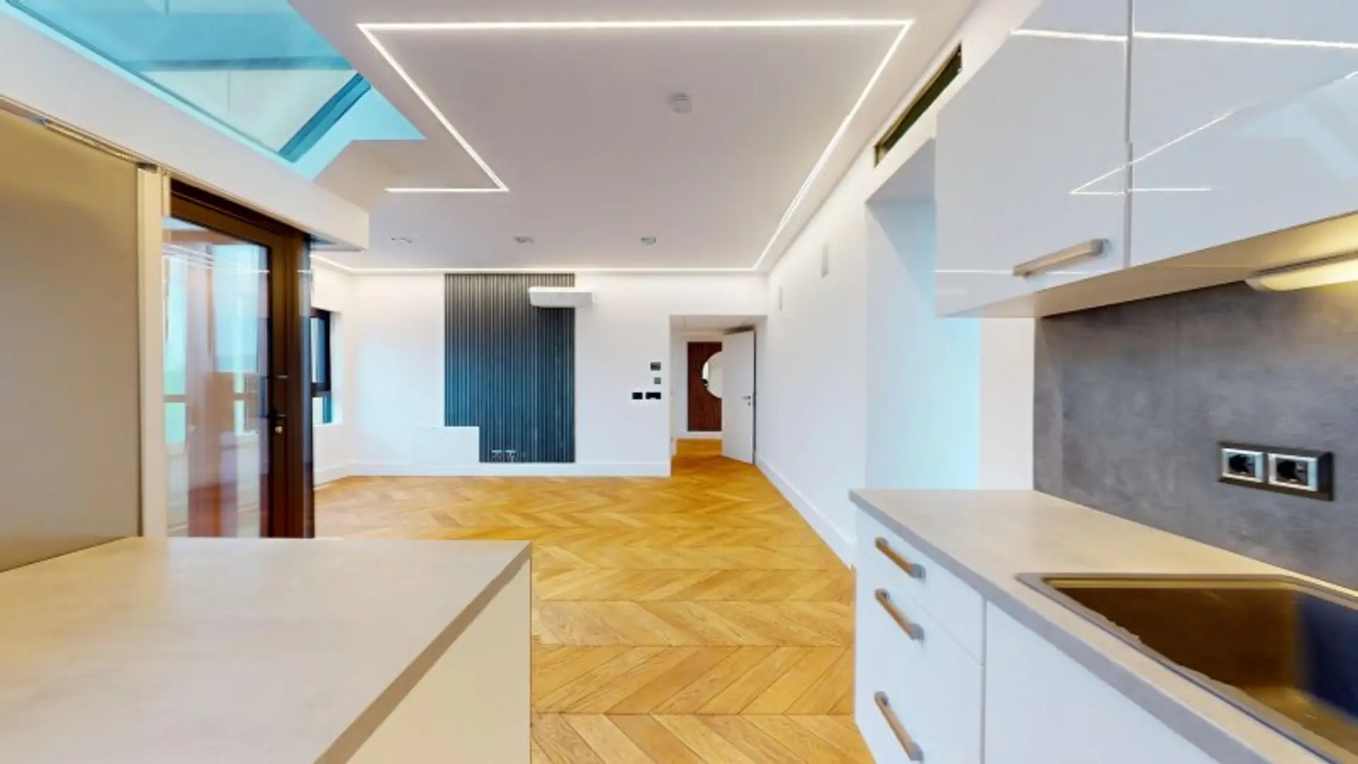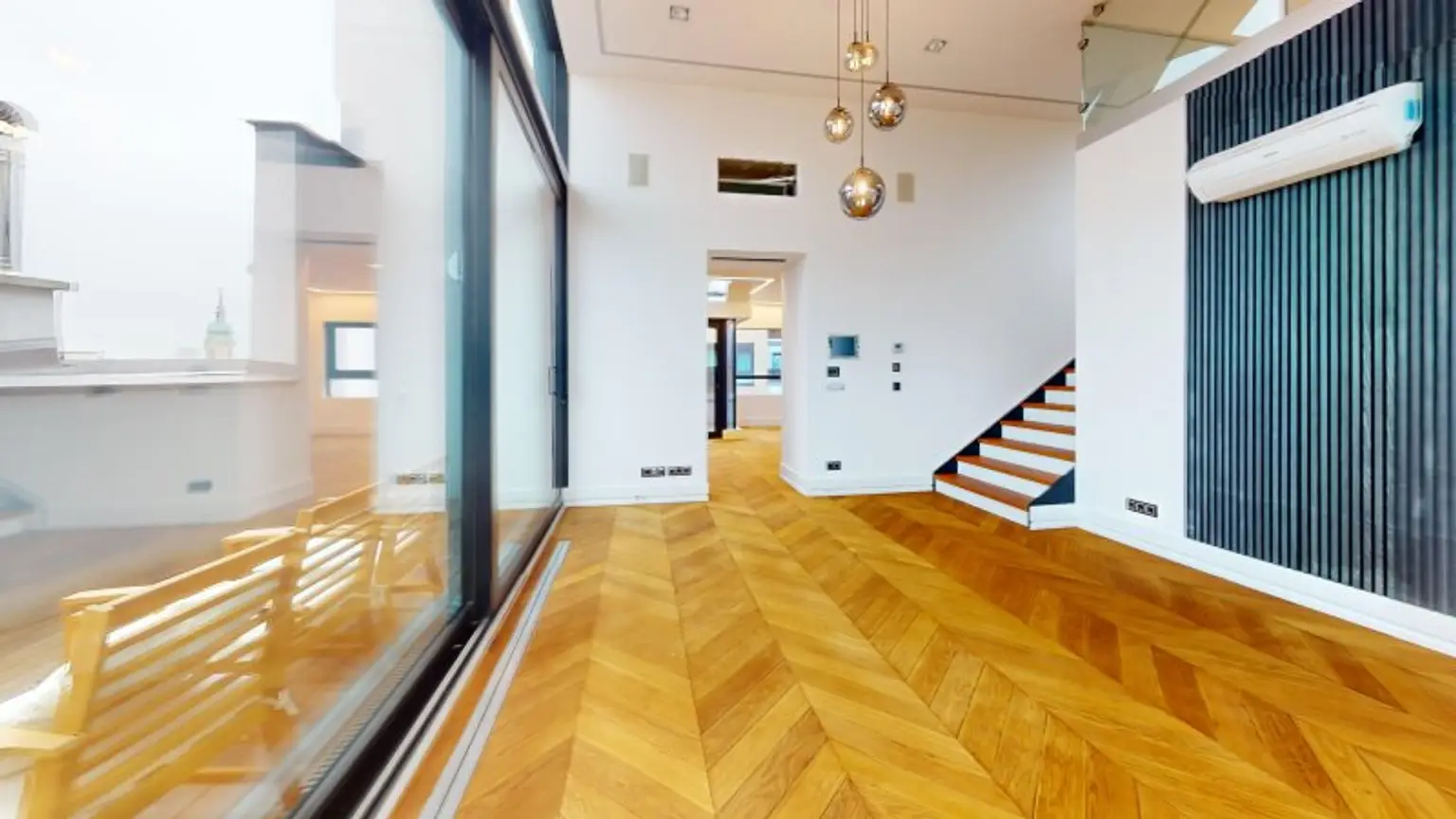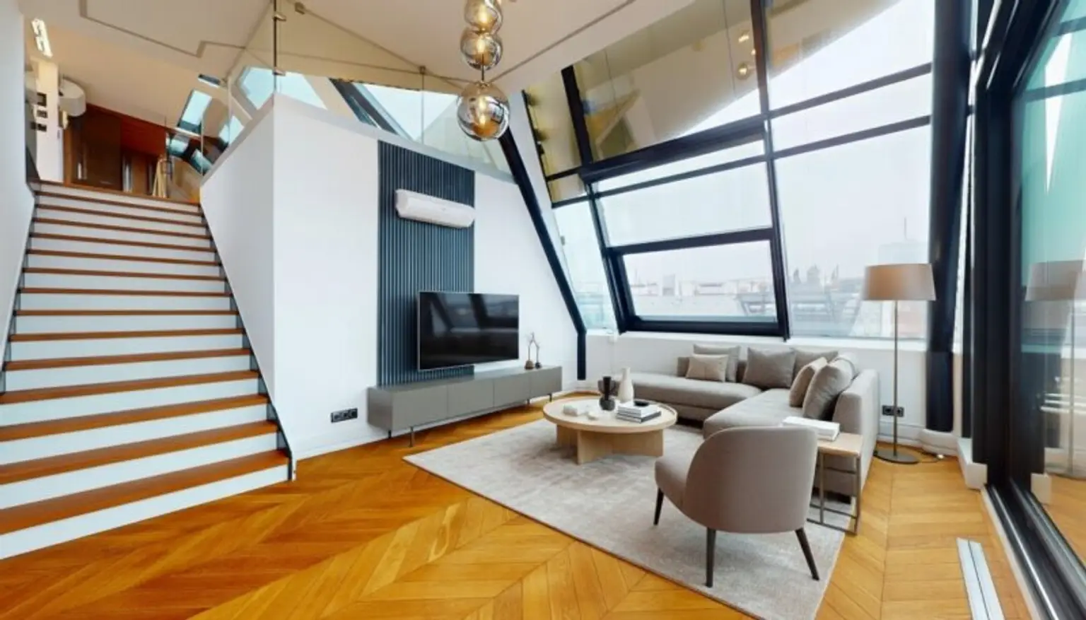 Hier trifft moderne Smart-Home-Technologie auf die stilvolle Eleganz eines prachtvollen Jahrhundertwendehauses kombiniert mit einer markanten Architektur, die man selten findet: Galerie-Flair, riesige Glasfronten und edler Fischgrätboden sorgen für ein Wohngefühl wie in einem luxuriösen Loft.