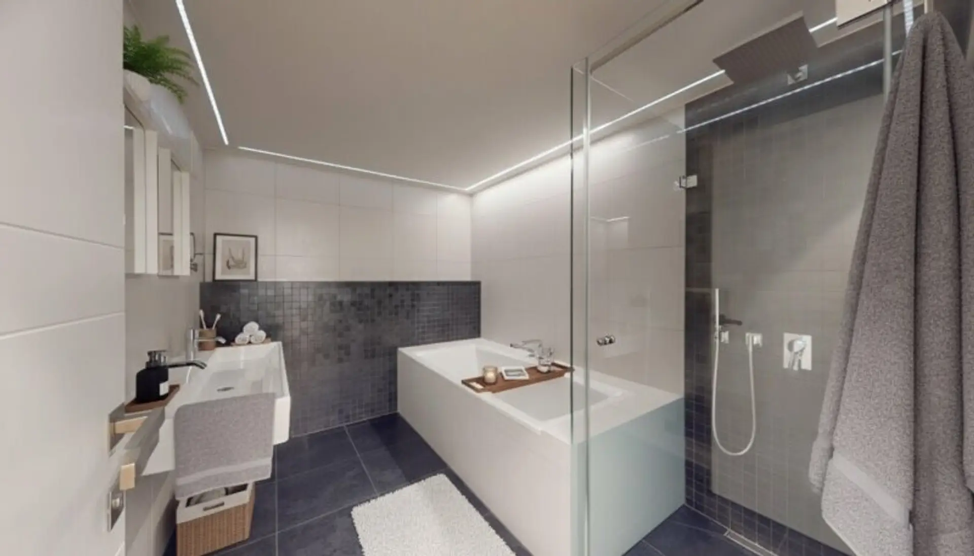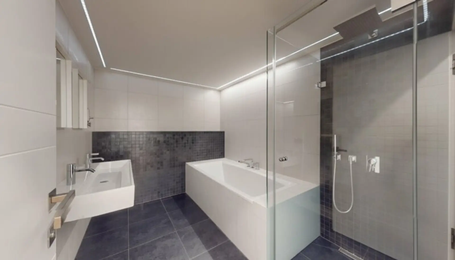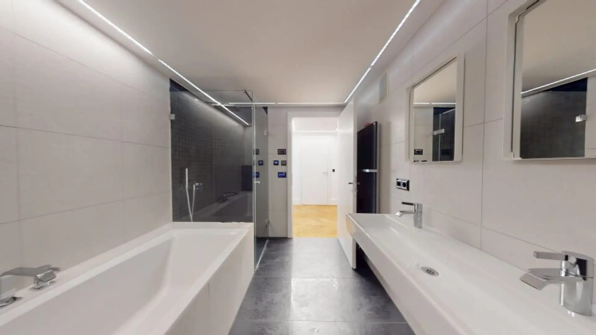 * Bad mit Dusche + Badewanne, 2 Waschbecken