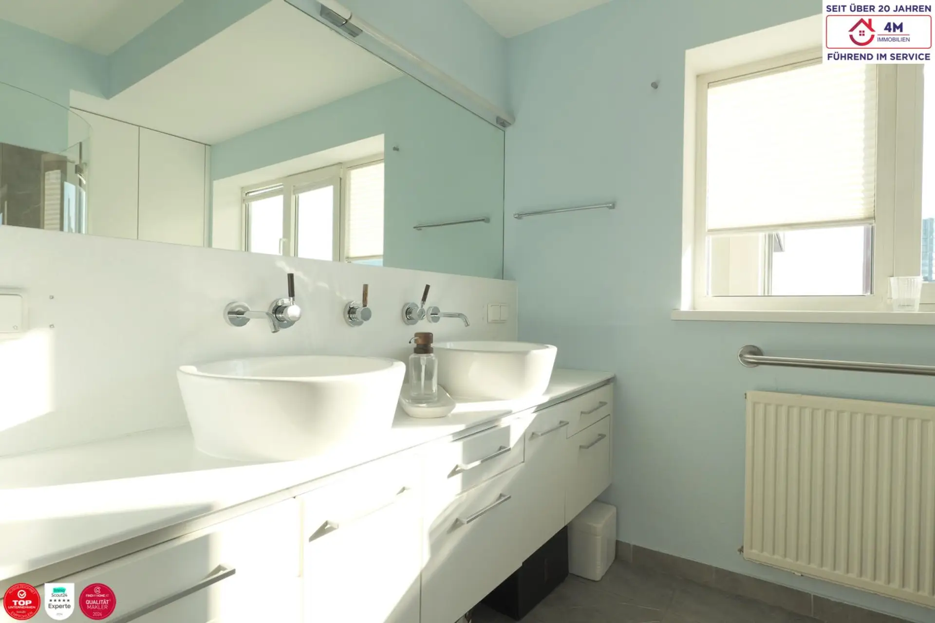 • Badezimmer mit Doppelwaschbecken & Dusche