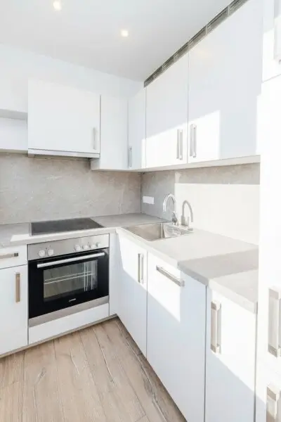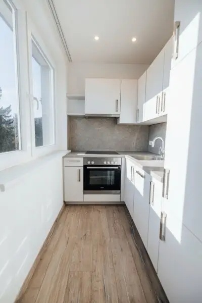 Ein weiteres Highlight ist die separate Küche, die sich direkt an den Wohnraum anschließt, aber dennoch räumlich klar abgegrenzt ist. Sie ist modern ausgestattet und verfügt über alle notwendigen Geräte – vom Backrohr über das Ceranfeld bis hin zum Kühlschrank. Damit ist sowohl für schnelles Kochen im Alltag als auch für aufwendigere Menüs die perfekte Grundlage geschaffen.