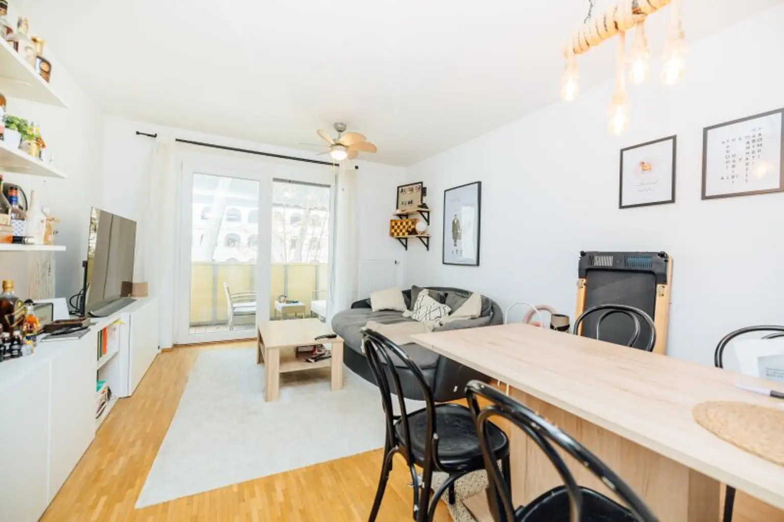 Der offene Wohn-Essbereich ist das Herz der Wohnung: hell, freundlich und vielseitig nutzbar – mit direktem Ausgang auf den Balkon und genügend Platz für Couch, Wohnwand und Essbereich.