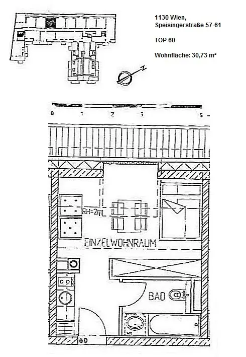 Zum Bezug nach Absprache steht diese schöne 1-Zimmer-Wohnung im 13. Bezirk in der Speisingerstraße für Sie bereit. Die ca. 31 m² große Wohnung befindet sich im 2. Dachgeschoss eines schönen Neubauhauses und gliedert sich in einen Vorraum mit Küchenzeile, einen Wohn-/Schlafraum und ein Badezimmer mit Toilette. Einige Highlights: - hervorragender Grundriss - Küche komplett ausgestattet - Badezimmer mit Badewanne, Toilette und Waschmaschinenanschluss - optimale öffentliche Anbindungen (Buslinie 65A, 65B, Straßenbahnlinie 60 und 62) - Restaurants, Cafés und Einkaufsmöglichkeiten in unmittelbarer Nähe Selbstverständlich stehen sowohl Fernseh- als auch Internetanschluss sowie Lift und ein Kellerabteil zur Verfügung. Der Mietzins beläuft sich auf Euro 670,01 inkl. Betriebskosten, BK-Müll und Umsatzsteuer. Die Heiz- und Warmwasserversorgung erfolgt per Fernwärmeheizung. Die Kosten dafür betragen: - Heizung: Euro 19,18 inkl. USt. - Warmwasser: Euro 10,81 inkl. USt. Somit beläuft sich die monatliche Gesamtbelastung dieser Wohnung auf Euro 700,- inkl. Betriebskosten, Heizung, Warmwasser, BK-Müll und Umsatzsteuer. Vertragsgebühren und Akontozahlungen(z.B. Betriebskosten) können sich per Jahreswechsel ändern. Wir möchten darauf hinweisen, dass unsere Antwort möglicherweise in Ihrem Spamordner landen könnte. Per Telefon werden keine Termine vergeben! Wir bitten Sie, ausschließlich das Kontaktformular der Immobilienplattformen für Anfragen zu nutzen. Nach Erhalt unserer E-Mail antworten Sie bitte auf dieses E-Mail mit Ihrem Besichtigungswunsch. Wir freuen uns auf Ihre Anfrage und einen gemeinsamen Besichtigungstermin!