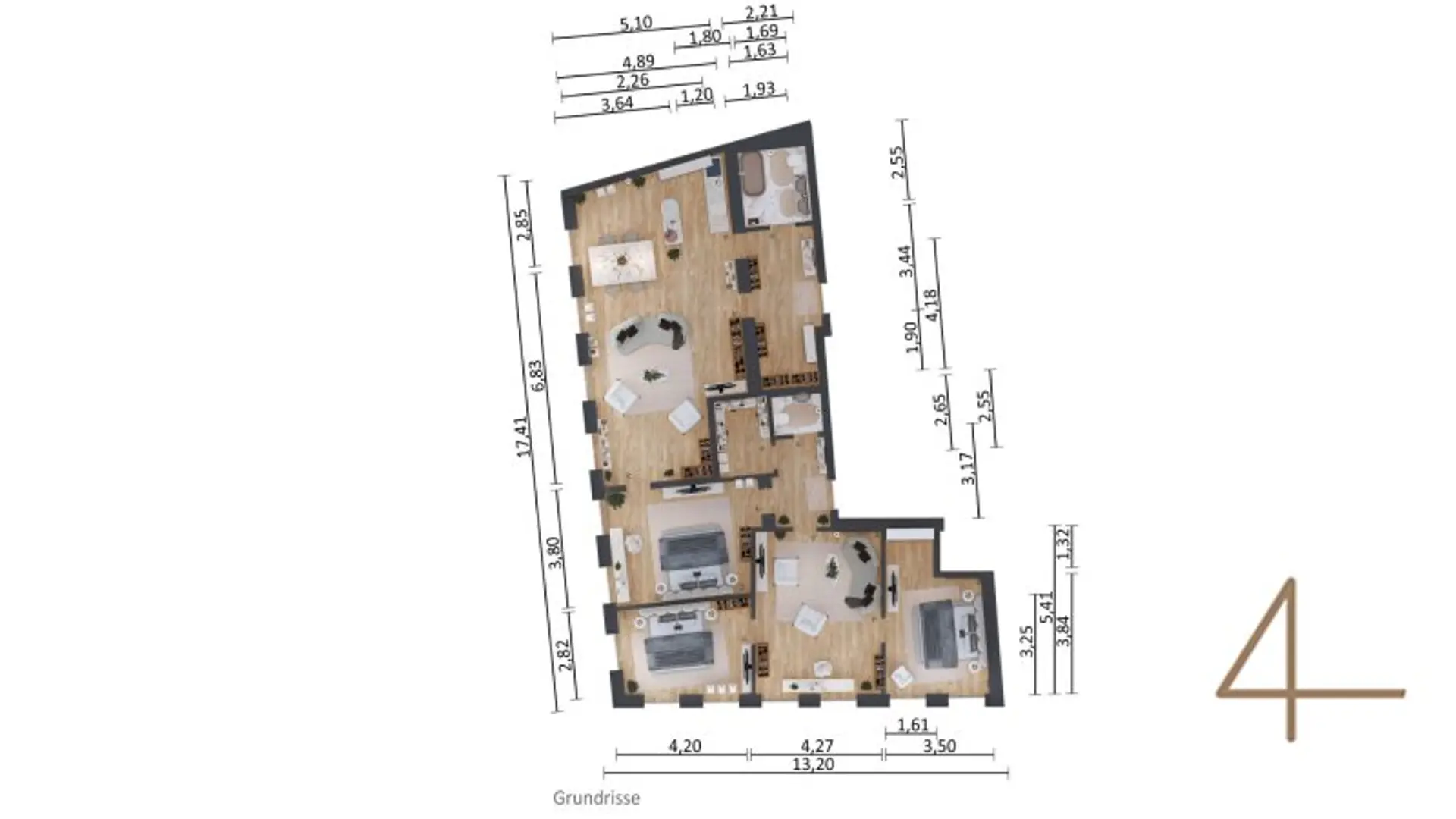 The great size results from combining two apartments, plus you have two entrances and could also separate the areas into living and sleeping areas (guest area and private area). The light-flooded rooms and the spacious layout make this apartment the ideal choice for a large family, students or as an apartment with a home office.