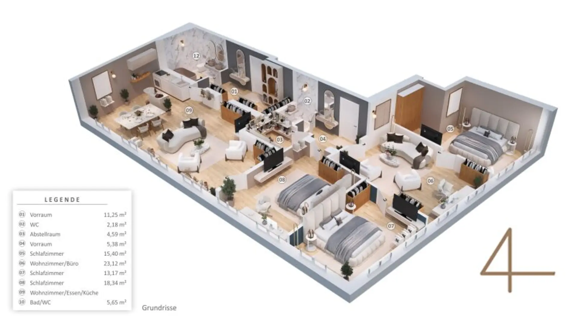 Die lichtdurchfluteten Räume und der großzügige Schnitt machen diese Wohnung zur idealen Wahl für eine große Familie, Studenten oder als Wohnung mit Home-Office.