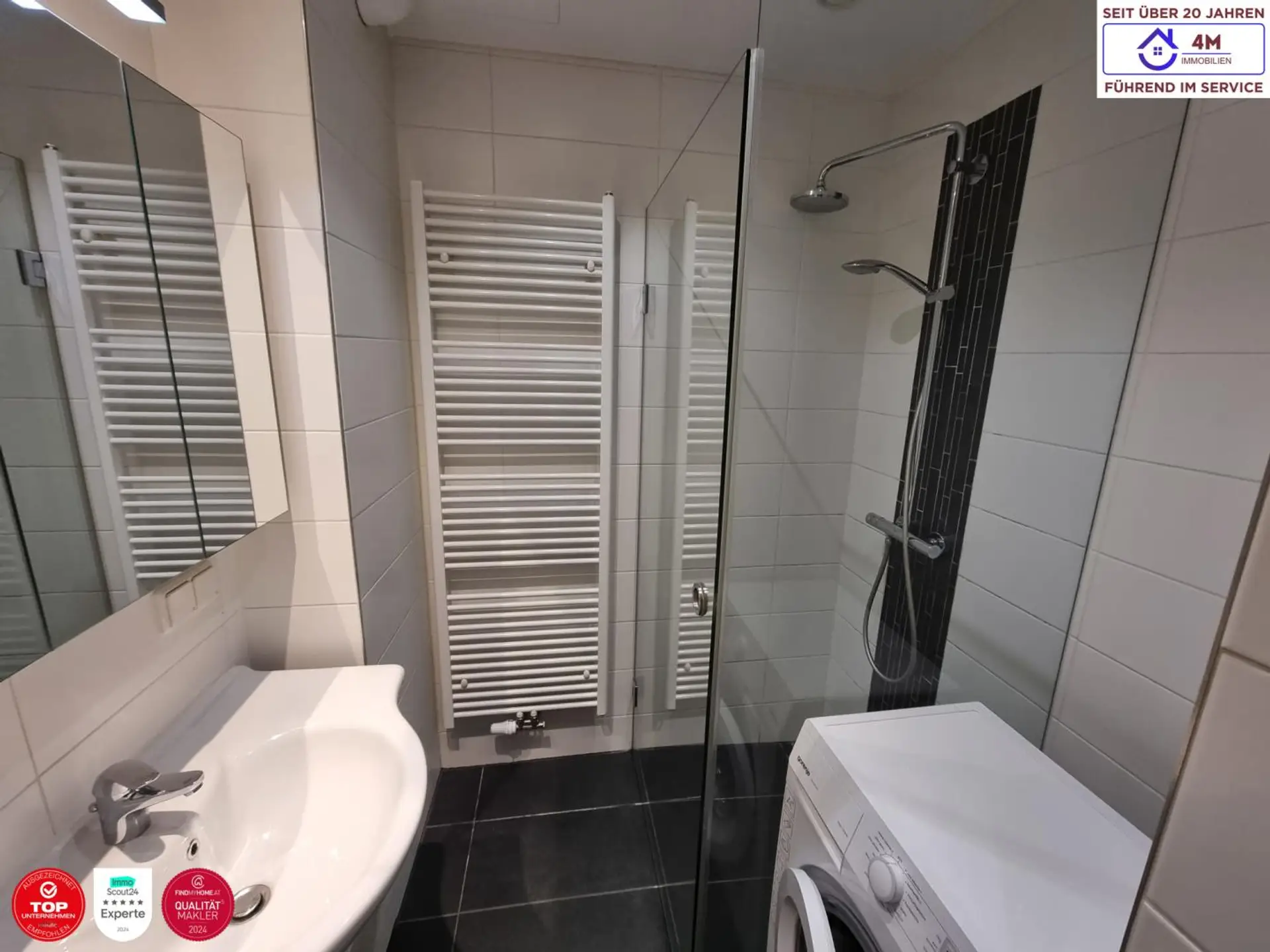 Badezimmer mit Dusche und Waschmaschine (Gorenje)