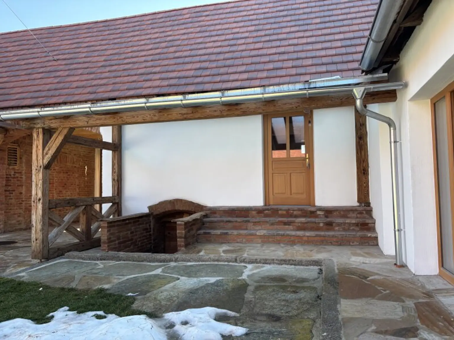 Auf der anderen Seite des Hofes befindet sich die sogenannte Sommerküche mit Wasseranschluss und Abgang zum Lagerkeller.
