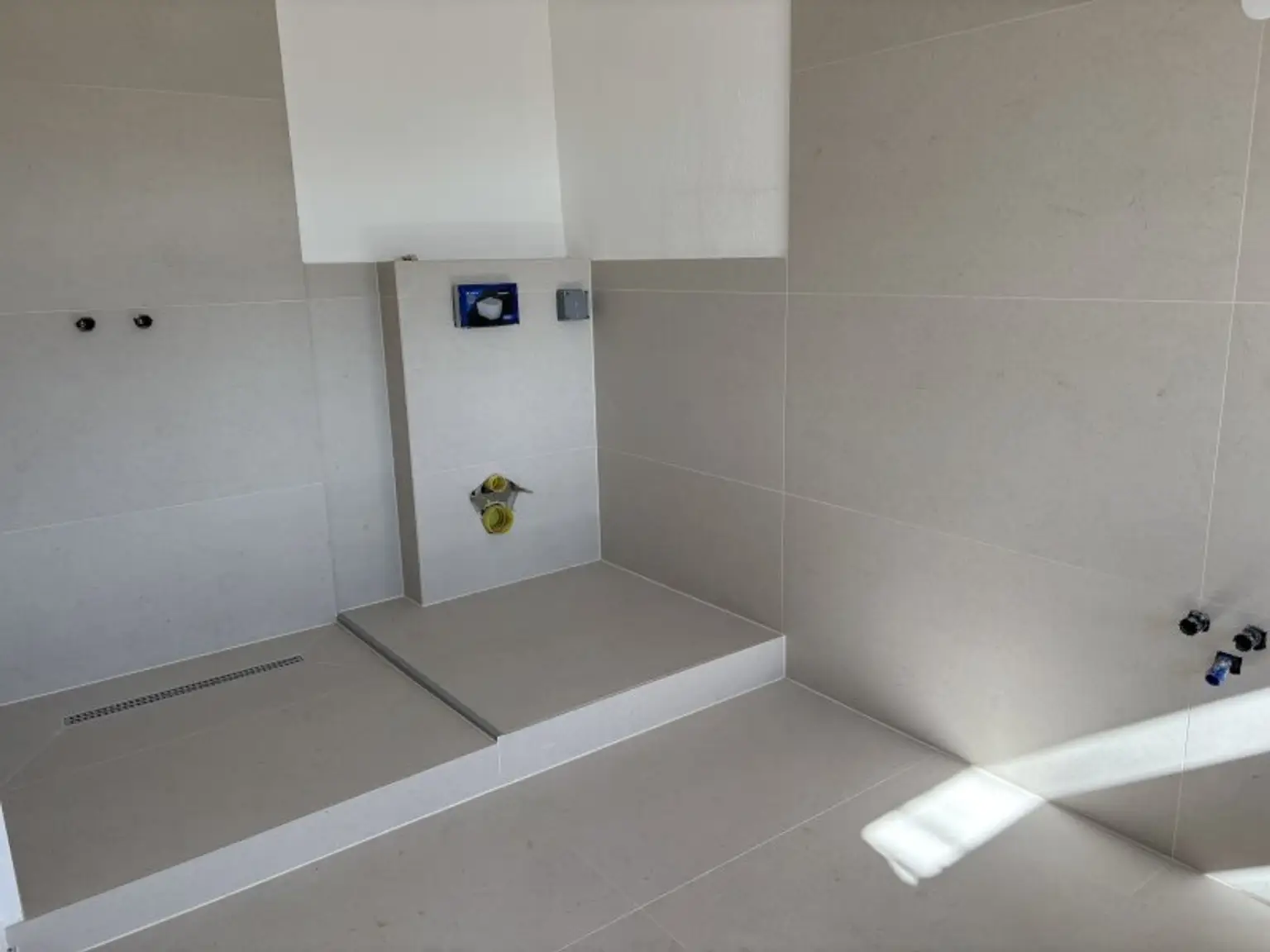 Durch den Arkadengang betritt man den Waschraum mit Anschlüssen für Waschmaschine und Trockner und einem Wc. Anschließend ist der Heizraum mit der Ochsner-Wärmepumpe.