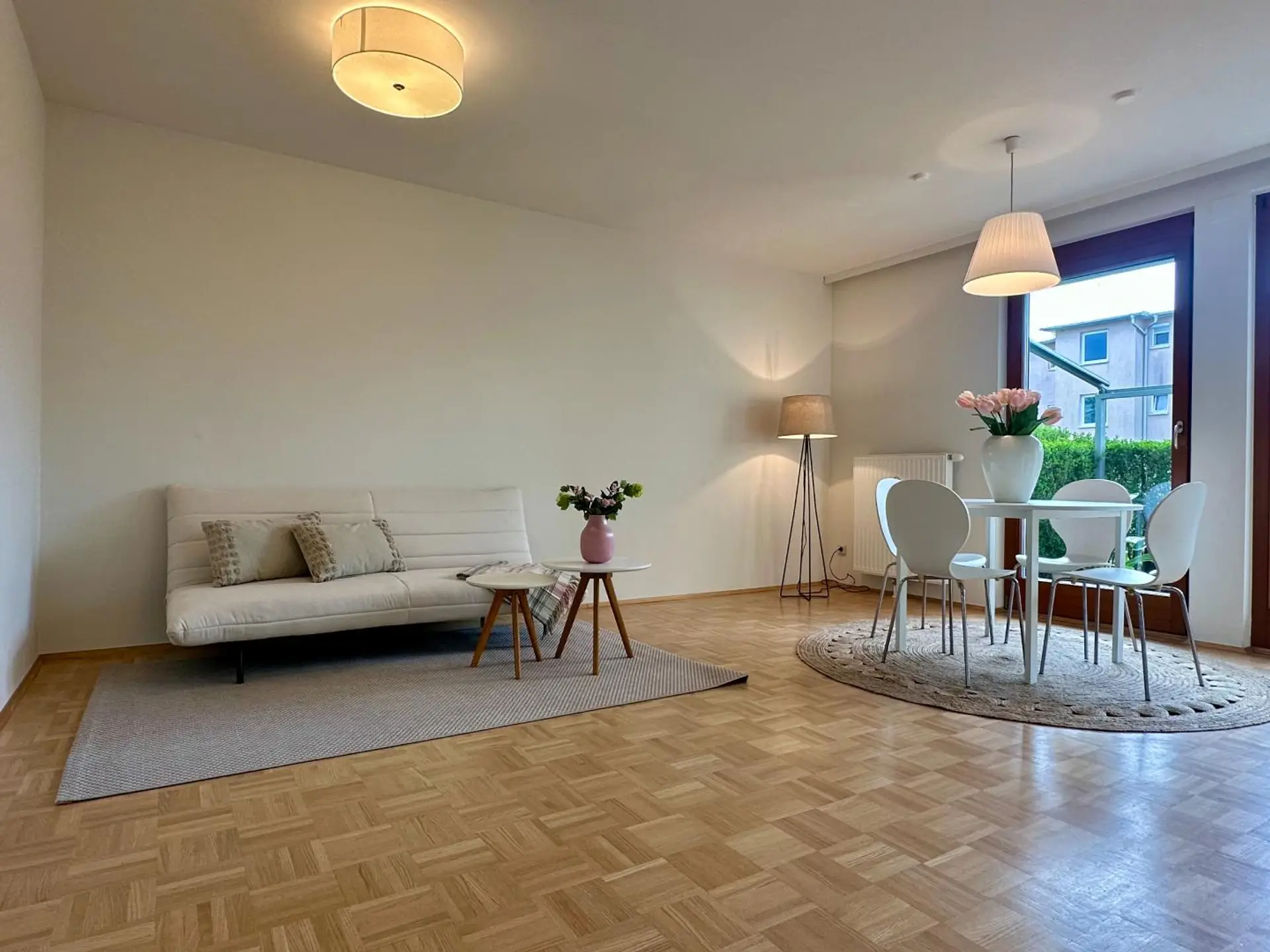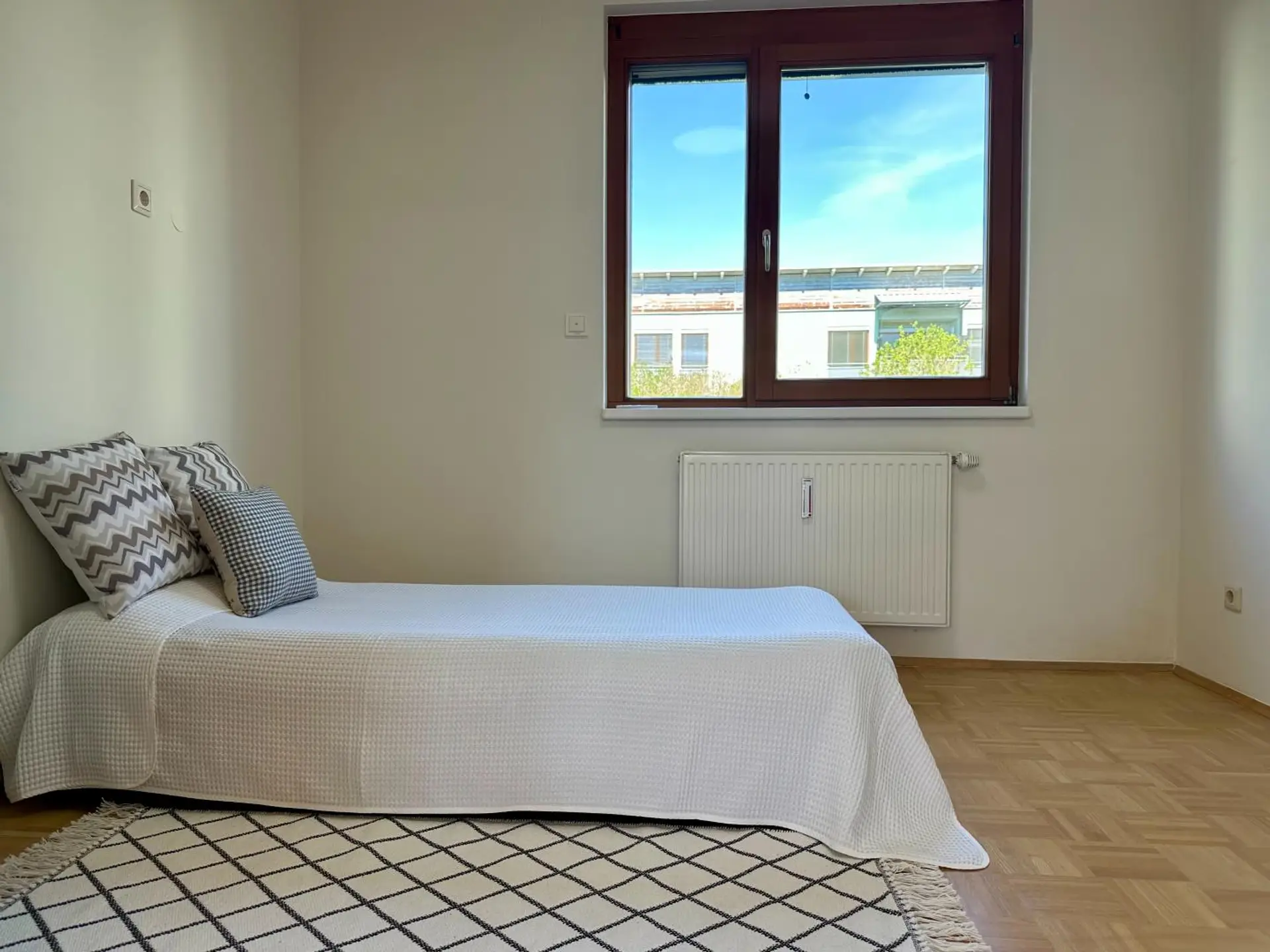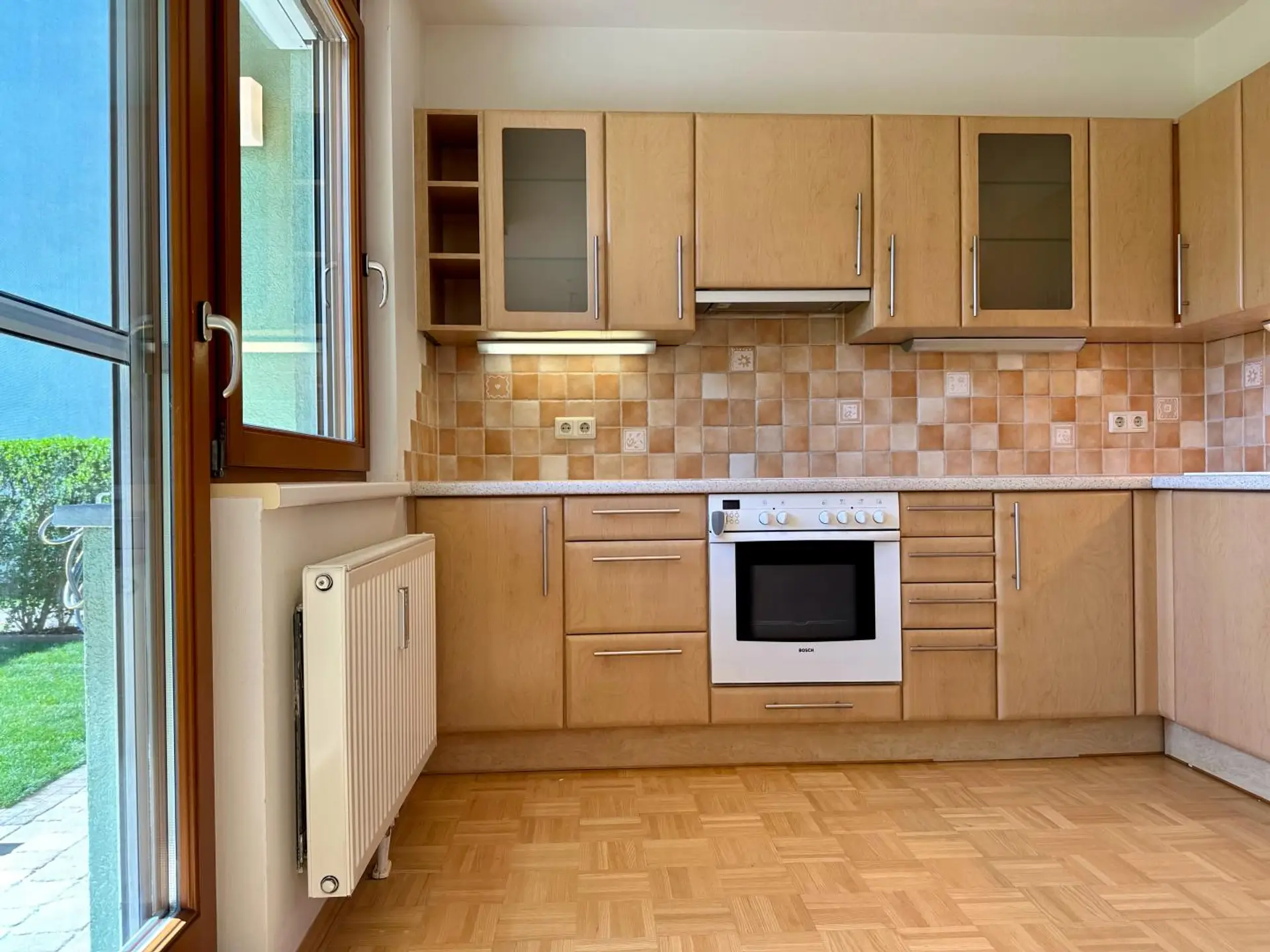 Die Beheizung erfolgt mit einer Gas-Zentralheizung. Die Böden sind mit Parkett bzw. Feinsteinzeugfliesen (Vorraum, Bad, WC) verlegt.