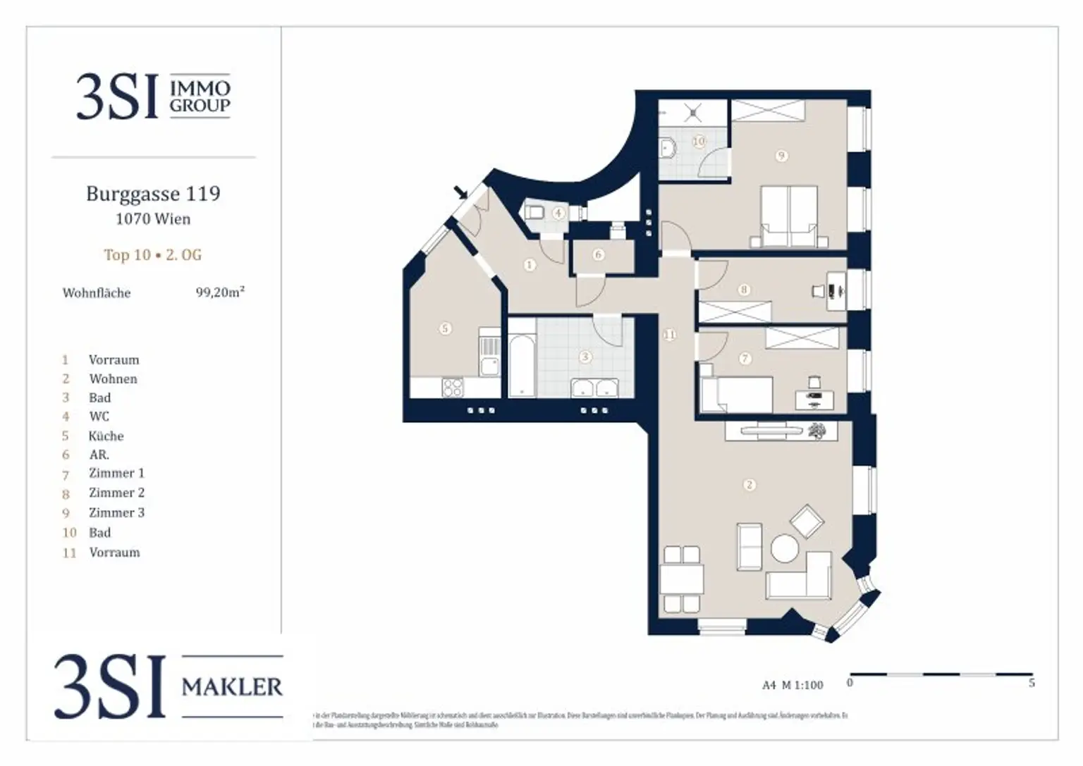 Die Wohnung befindet sich im 2. Obergeschoß in der Burggasse 119 im 7. Wiener Gemeindebezirk, einem lebendigen und beliebten Viertel. Die Umgebung zeichnet sich durch eine hohe Fußgängerfrequenz, zahlreiche Geschäfte, Cafés und Restaurants aus, was für eine hohe Sichtbarkeit sorgt. Nur wenige Gehminuten entfernt befinden sich die U-Bahn-Stationen U3 „Zieglergasse“ und U6 „Gumpendorfer Straße“, die eine ausgezeichnete Anbindung an den öffentlichen Verkehr bieten.