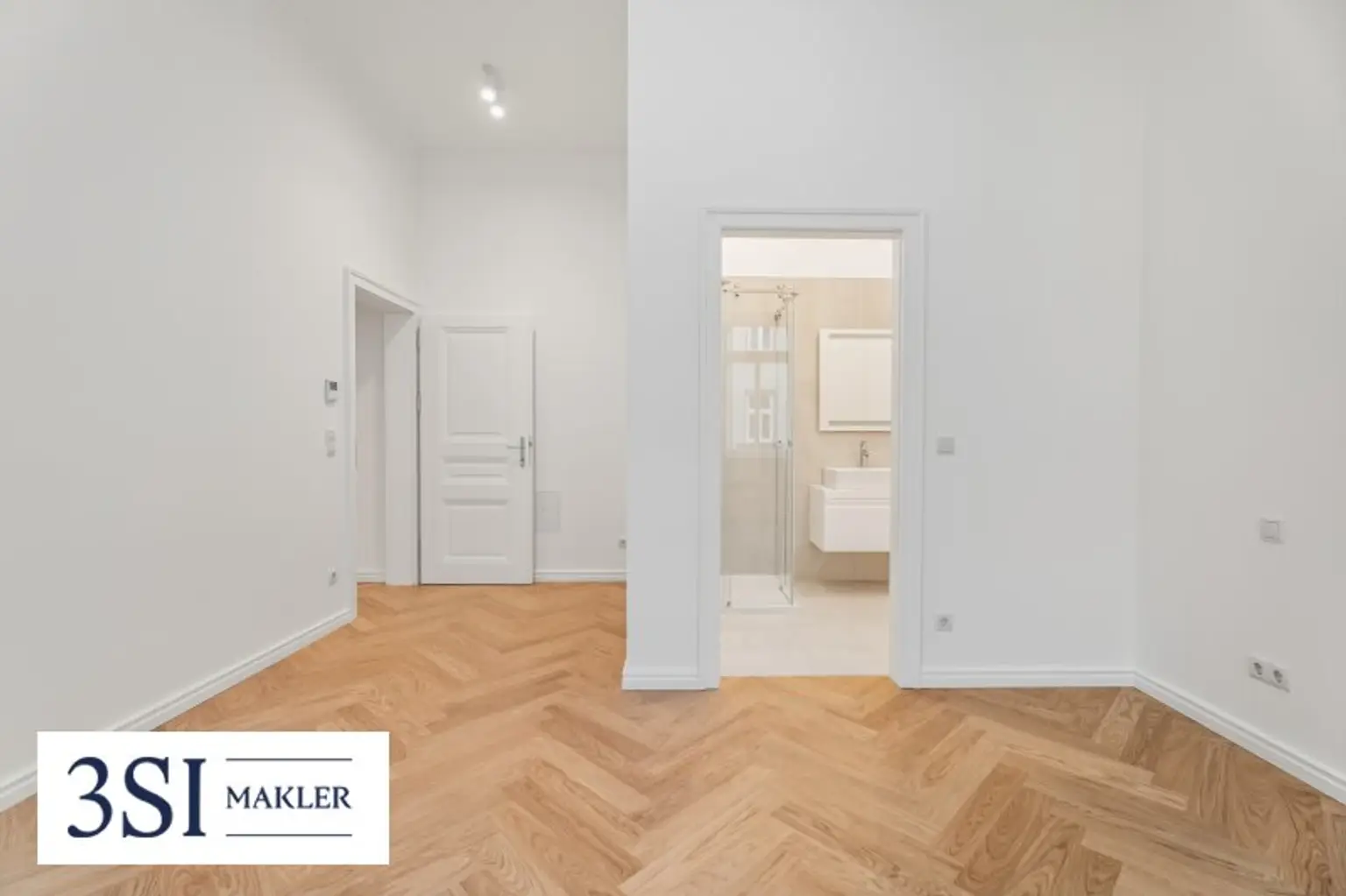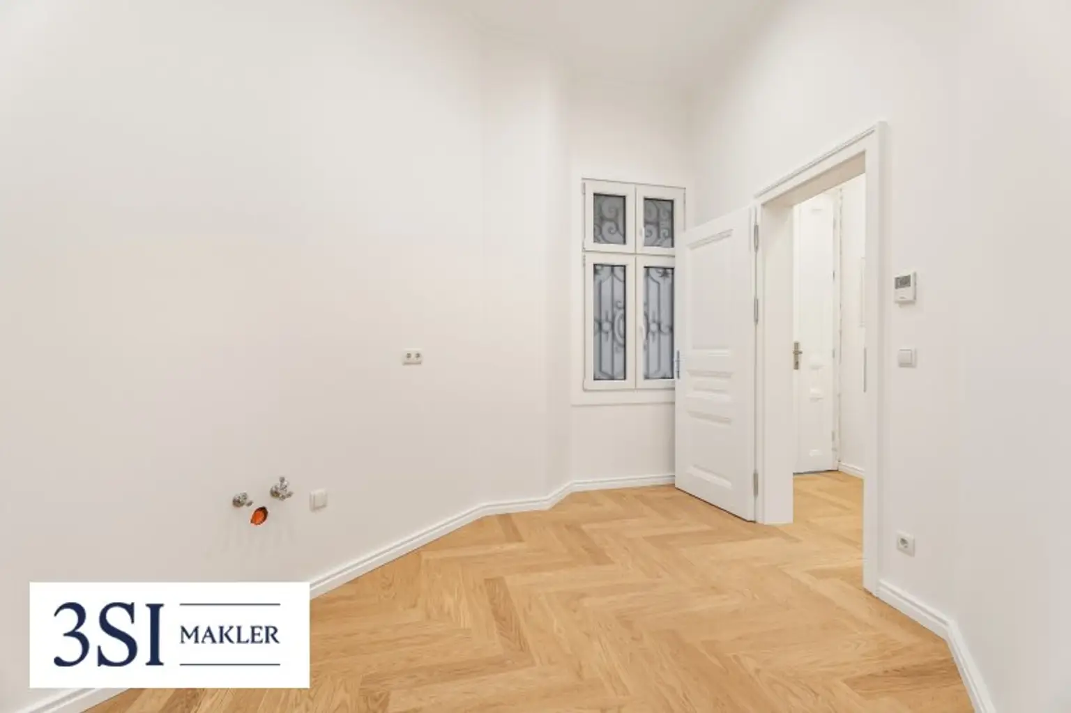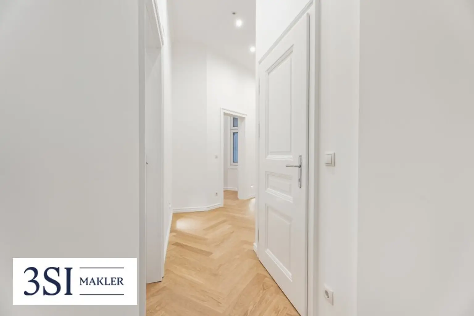 Die gesamte Wohnung ist mit edlem Eichenparkett im Fischgrätmuster ausgestattet. Türen und Fenster wurden im klassischen Altbaustil erneuert und unterstreichen den besonderen Charme dieser Immobilie. Als Erstbezug nach umfassender Sanierung verbindet dieses Objekt historische Eleganz mit modernem Wohnkomfort – perfekt für alle, die das Besondere suchen.