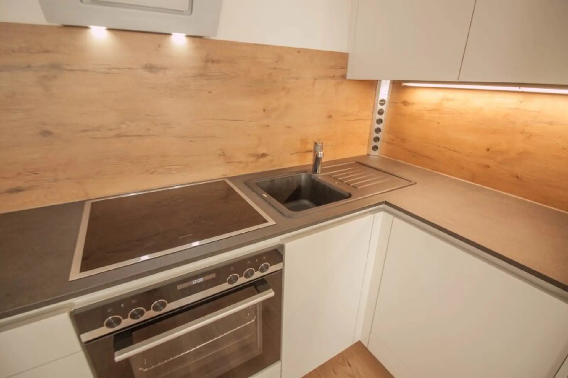 * Wohnbereich mit anschließender offener, bereits voll ausgestatteter DAN-Markenküche