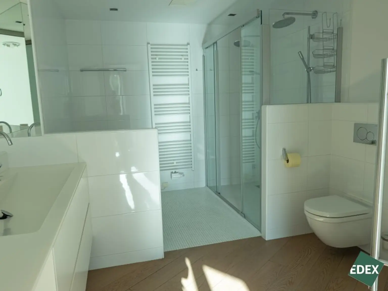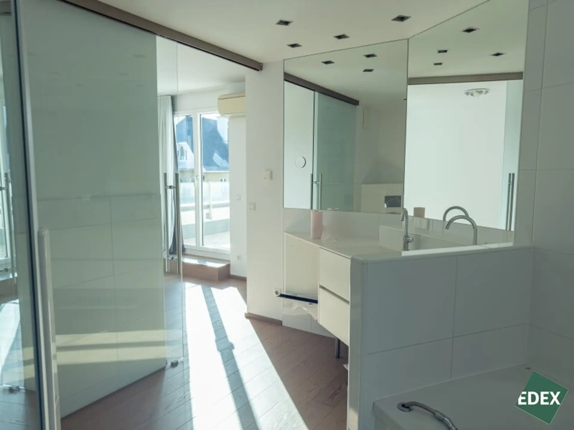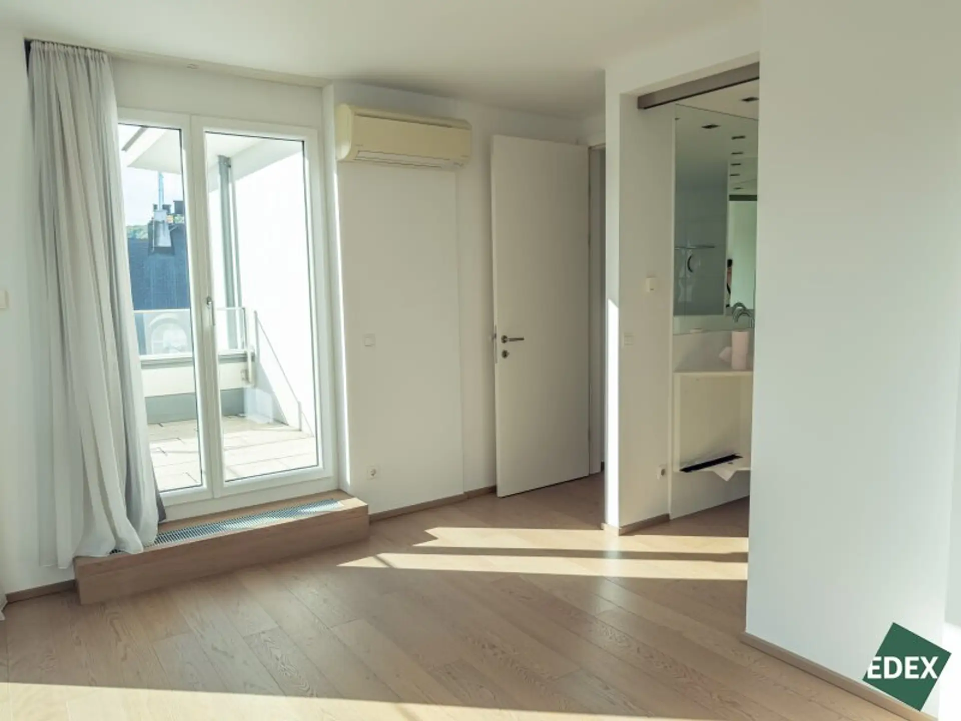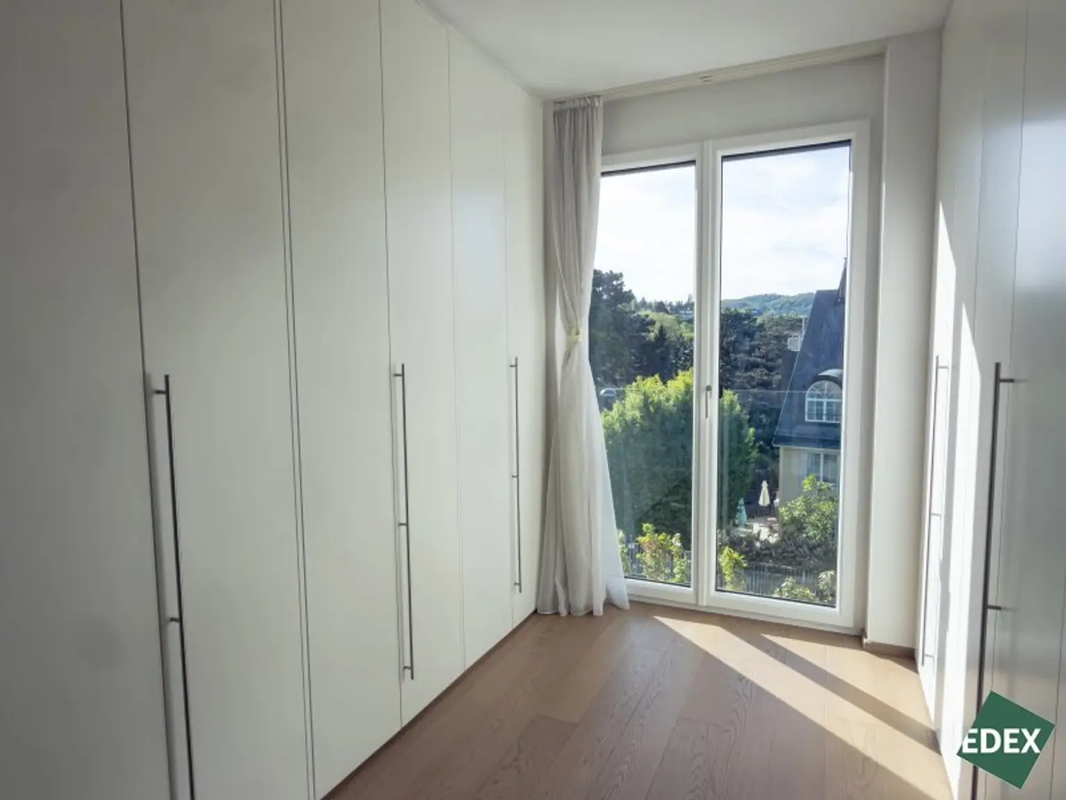 Die Wohnung verfügt über zwei gut geschnittene Schlafzimmer, teilweise mit direktem Zugang zur zweiten Terrasse, sowie über einen separaten großen Schrankraum inkl. Einbaukästen und einen praktischen Abstellraum.