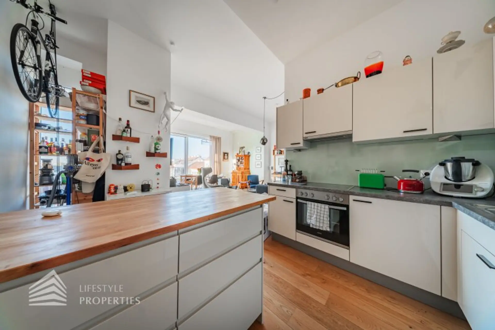 Die Immobilie befindet sich im 2. Liftstock eines im Jahre 1971 erbauten, gepflegten Hauses und erstreckt sich über eine Wohnfläche von ca. 80 m². Die Wohnung teilt sich in eine große Wohnküche, zwei Zimmer, einen Balkon, eine kleine Loggia, ein Badezimmer und eine Gästetoilette auf. Die Haupträume sind mit einem hochwertigen Parkettboden ausgekleidet, der Vorraum sowie die Nassräume sind gefliest. Die Wohnung verfügt in allen Räumen über eine Fußbodenheizung sowie über ein eigenes Kellerabteil.