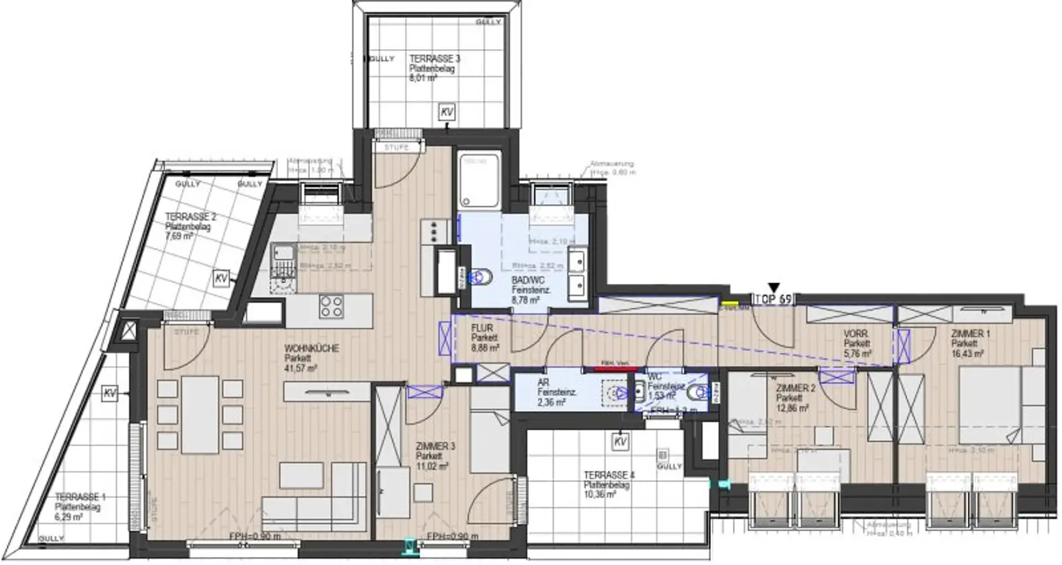 Ausstattung: Boden Bad Klimaanlage Abstellraum Fußbodenheizung Terrasse
