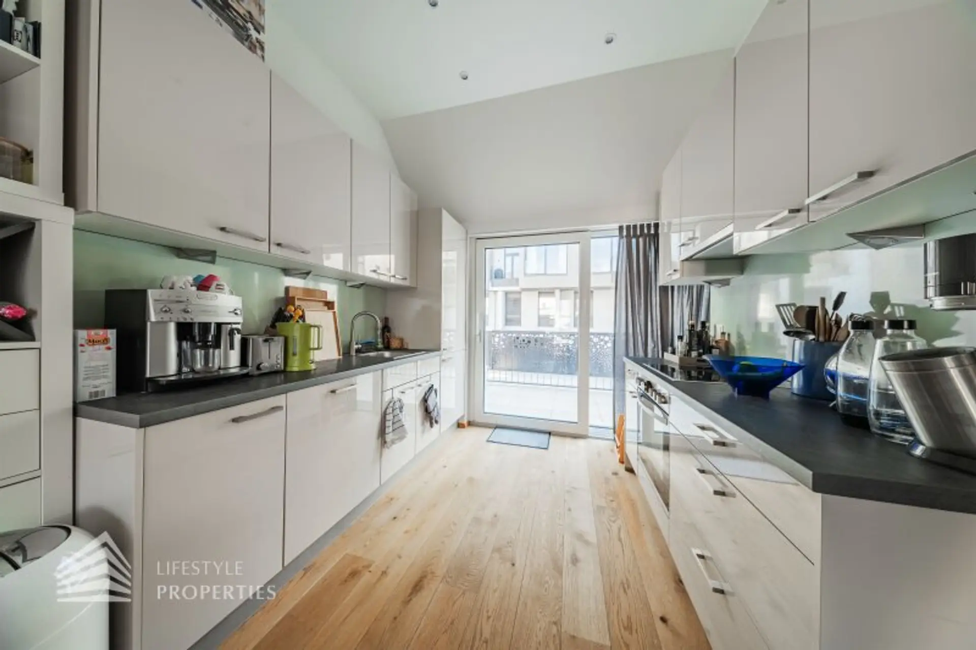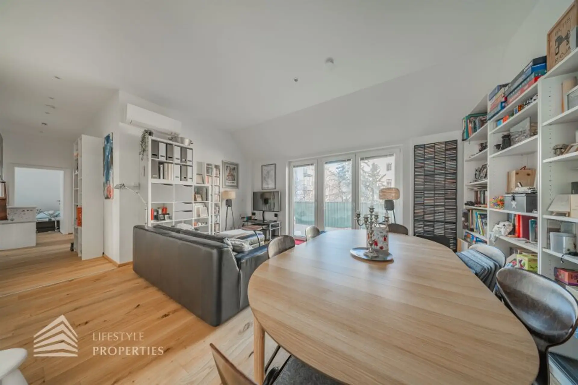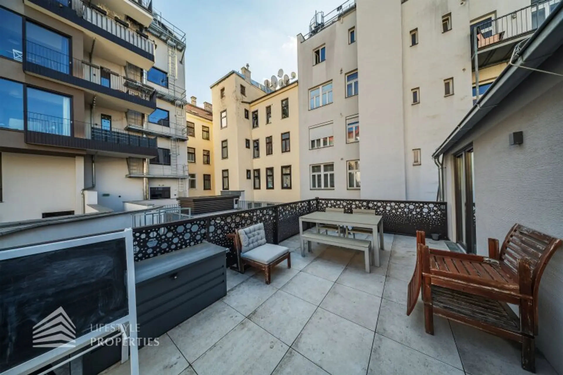 Die Immobilie befindet sich im Dachgeschoss im Innenhofgebäude eines im Jahre 1971 erbauten, gepflegten Hauses und erstreckt sich über eine Wohnfläche von ca. 83 m². Die Wohnung teilt sich in eine große Wohnküche, drei Zimmer, einen Balkon, eine Terrasse, ein Badezimmer, einen Vorraum, und eine separate Toilette auf. Die Haupträume sind mit einem hochwertigen Parkettboden ausgekleidet, der Vorraum sowie die Nassräume sind gefliest. Die Wohnung verfügt in allen Räumen über eine Fußbodenheizung sowie über ein eigenes Kellerabteil. Die Immobilie wird unmöbliert vermietet. Die gesamte Wohnung ist aufgrund der vielen hohen Fenster lichtdurchflutet und wirkt dadurch äußerst gemütlich und freundlich.