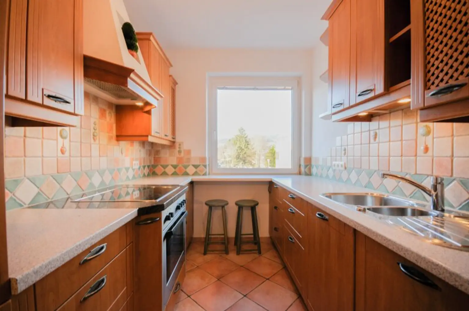 Die Küche ist mit einer sehr hochwertigen, Landhaus-Marken-Einbauküche ausgestattet und verfügt über sehr viel Stauraum, sämtliche Geräte wie Gefrier-/Kühl-Kombination, Geschirrspüler, Ceranfeld, Backrohr und Spüle.