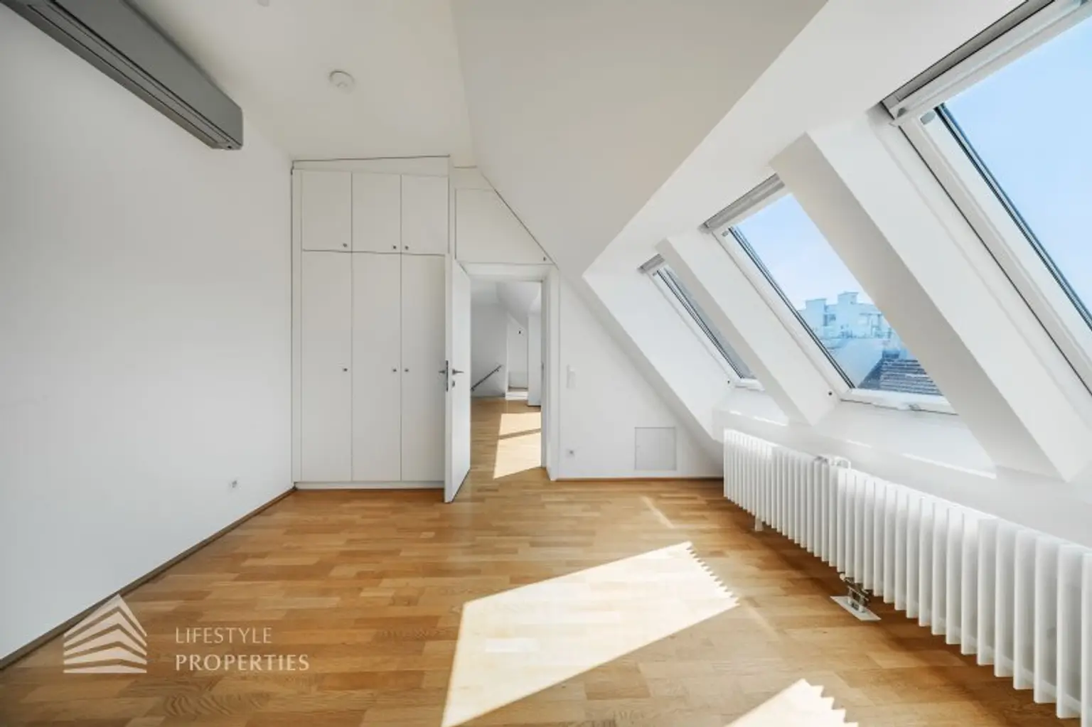 Die einzigartige Dachgeschosswohnung befindet sich in einem, im Jahr 1891 erbauten, wunderschönen Altbau und teilt sich in 2 Ebenen. Die Wohnräume sind mit schönem Parkett ausgestattet, die Bäder sind mit Fliesen ausgestattet, außerdem verfügt die Wohnung über eine Kühlung für heiße Sommertage. Mit einer Wohnfläche von ca. 252 m², 2 Terrasse mit einer Gesamtfläche von ca. 26 m² und viel natürlichem Tageslicht, überzeugt diese Wohnung in allen Punkten.
