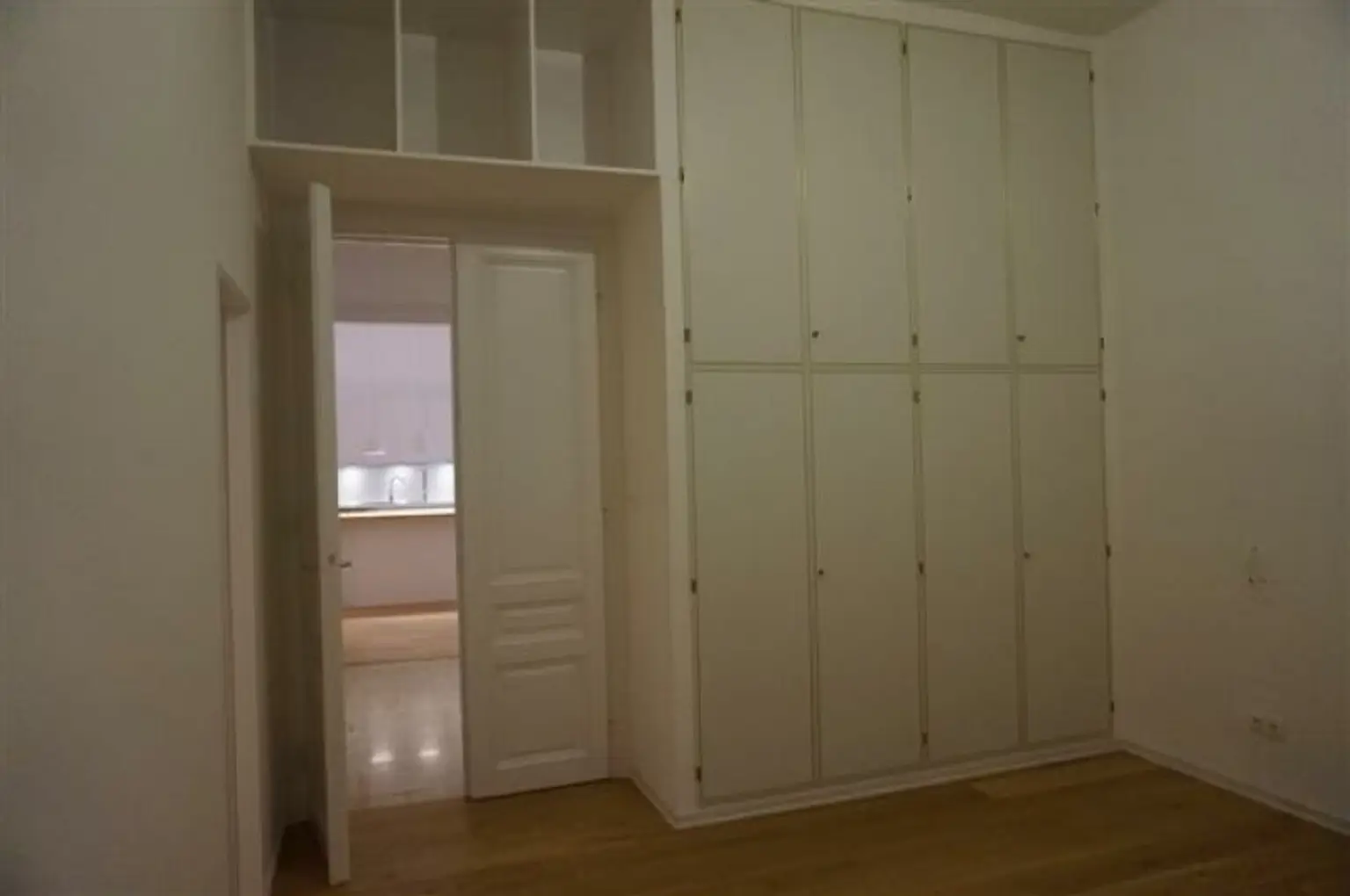The classic, spacious apartment in an old building has 5 rooms with parquet flooring and double doors, a separate kitchen with a window, and a spacious entrance hall that leads to the living room (35.75 m²).