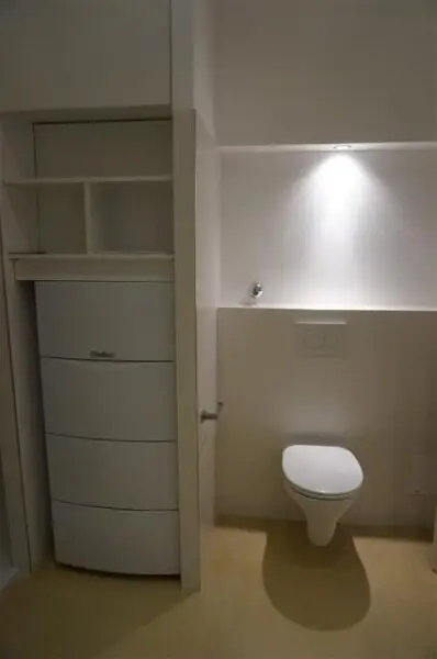 Навпроти кухні знаходиться третя спальня з прилеглою великою шафою (у спальні також є стіна з шафами з достатньою кількістю місця для зберігання речей) та ванною кімнатою з ванною, душем, туалетом і біде. До шафи та ванної кімнати також можна потрапити з передньої кімнати праворуч.