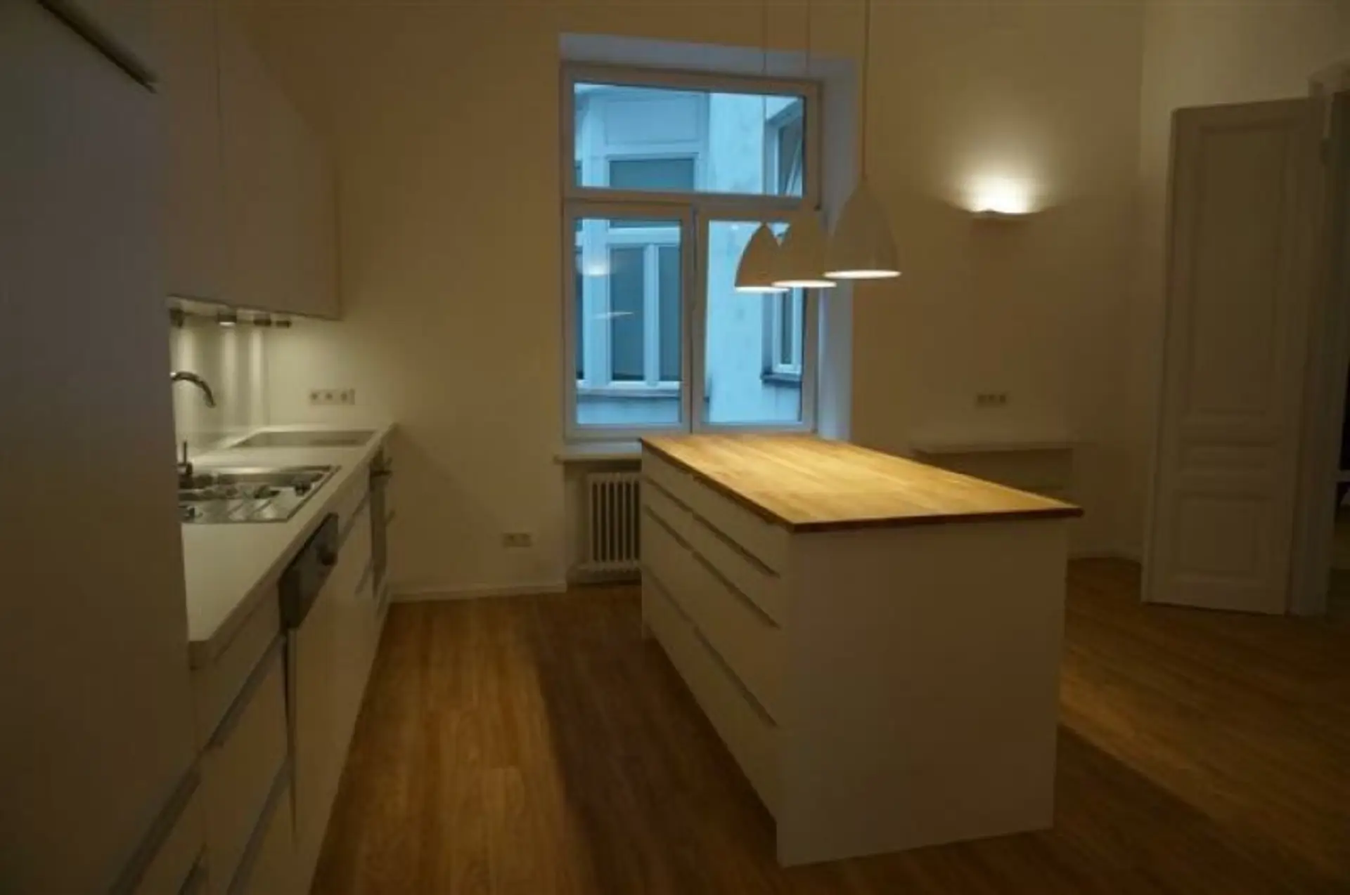 Overall, a great location, a beautiful, very prestigious Viennese apartment in an old building with 4 bedrooms, 2 bathrooms, and 3 toilets.