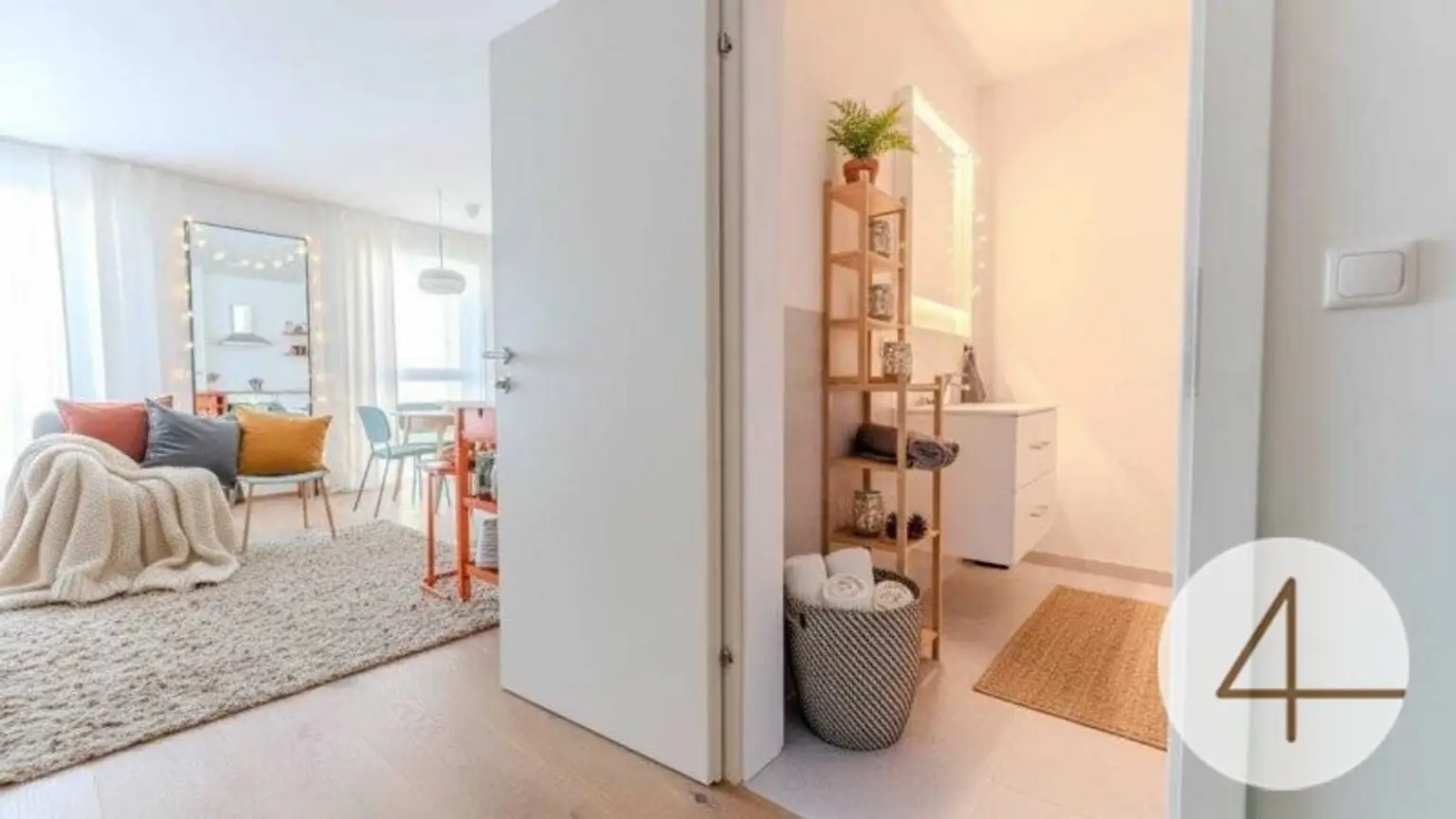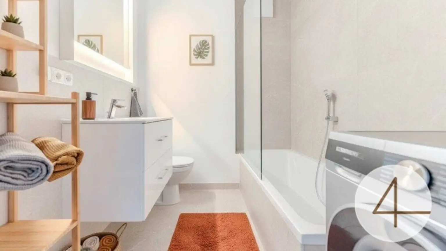 Parkettböden, Fliesen, Fußbodenheizung und einer energieeffizienten Luftwärmepumpe. Optional können Sie einen überdachten Parkplatz um € 15.000 oder einen freien Stellplatz um € 10.000 erwerben. Die gezeigte Einrichtung ist nicht im Kaufpreis enthalten.
