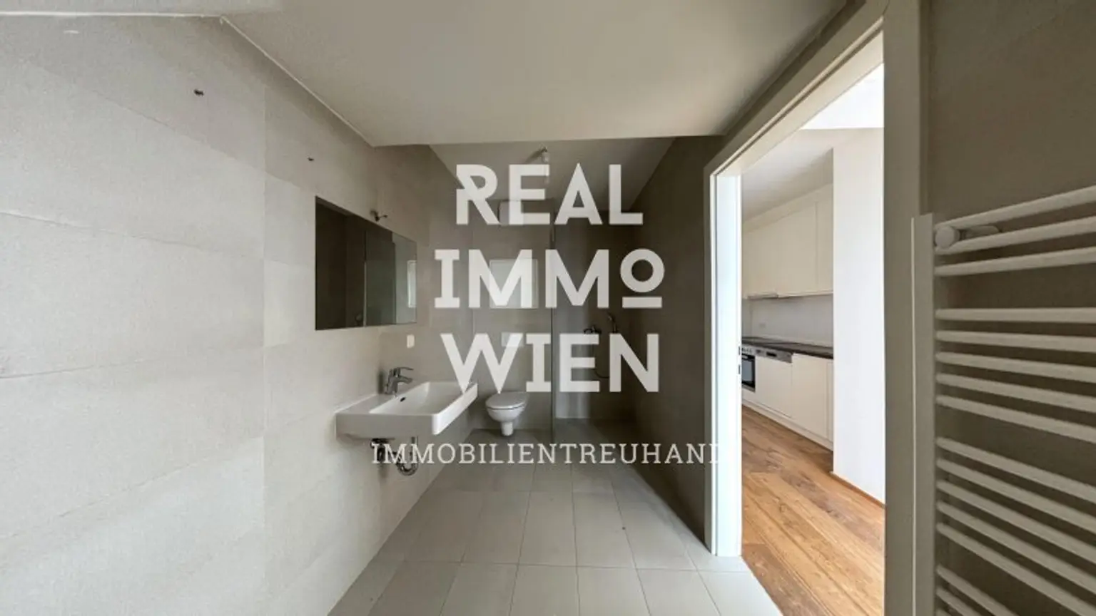 Die Wohnung verfügt eine hochmoderne Küche, Parkett Böden und geflieste Bäder.