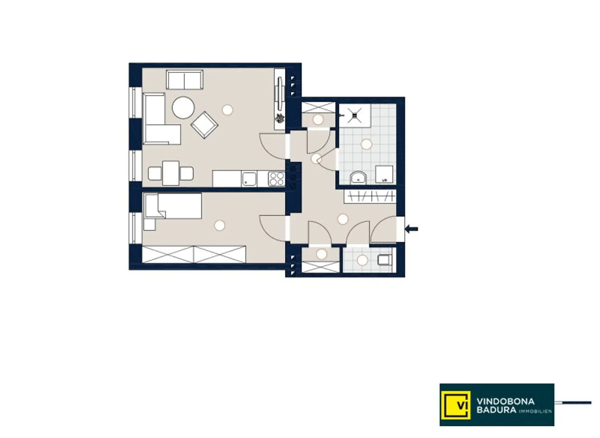 Auf rund 51 m² Wohnfläche erwartet Sie ein durchdachter Grundriss mit Vorraum, Abstellraum, separatem WC, modernem Badezimmer, ruhigem Schlafzimmer sowie einer großzügigen, lichtdurchfluteten Wohnküche. Die klassische Raumhöhe und großen Fenster verleihen der Wohnung ein besonders offenes und hochwertiges Wohngefühl.