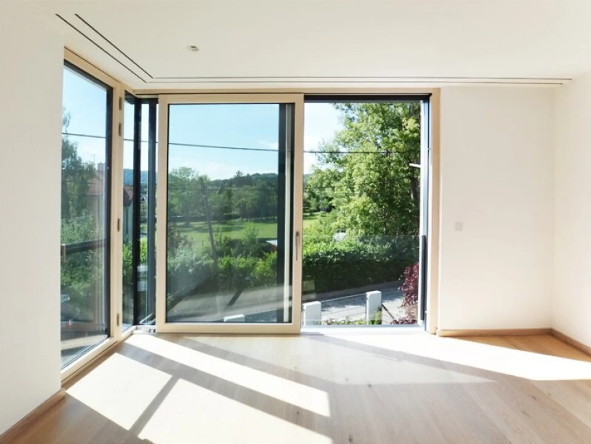 Vom Eingangsbereich aus, gelangt man in den hinteren Gartenbereich zu einer uneinsichtigen, kleinen Gartenterrasse, die als Salettl umgestaltet und begrünt werden kann. Nahezu alle Fenster sind mit Fliegenschutzgittern und elektrischen Außenjalousien versehen - in der Decke sind Gardinenschienen eingelassen. Die Terrasse ist mit einem hochwertigen, eigens gestrahlten Holzbelag ausgestattet.