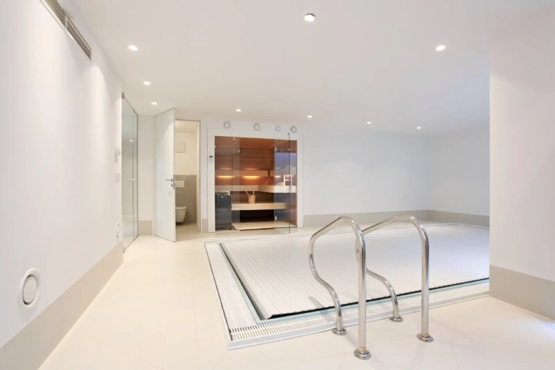 Der Wohnkeller bietet ein großzügiges Indoor-Pool, ausgestattet mit modernster Technik (Gegenstromanlage, Überlaufbecken, das für die Selbstreinigung des Wassers sorgt) sowie eine Sauna mit Dusch- und Toilettenanlage und einem kleinen Atrium. Ein Wäscheabwurfschacht bringt aus den Wohn- und Schlafräumen die Wäsche bequem in den ebenfalls im Keller befindlichen Wirtschaftsraum, der mit Anschlüssen für Waschmaschine und Trockengerät ausgestattet ist. Ein Heiz- und Technikraum (Erdwärme-Anlage), ein wandhoher Weinkühler, ein großer Wandtresor sowie diverse Abstellräume befinden sich ebenfalls in dem praktisch angelegten Keller und sorgen damit für ausreichenden Stauraum.