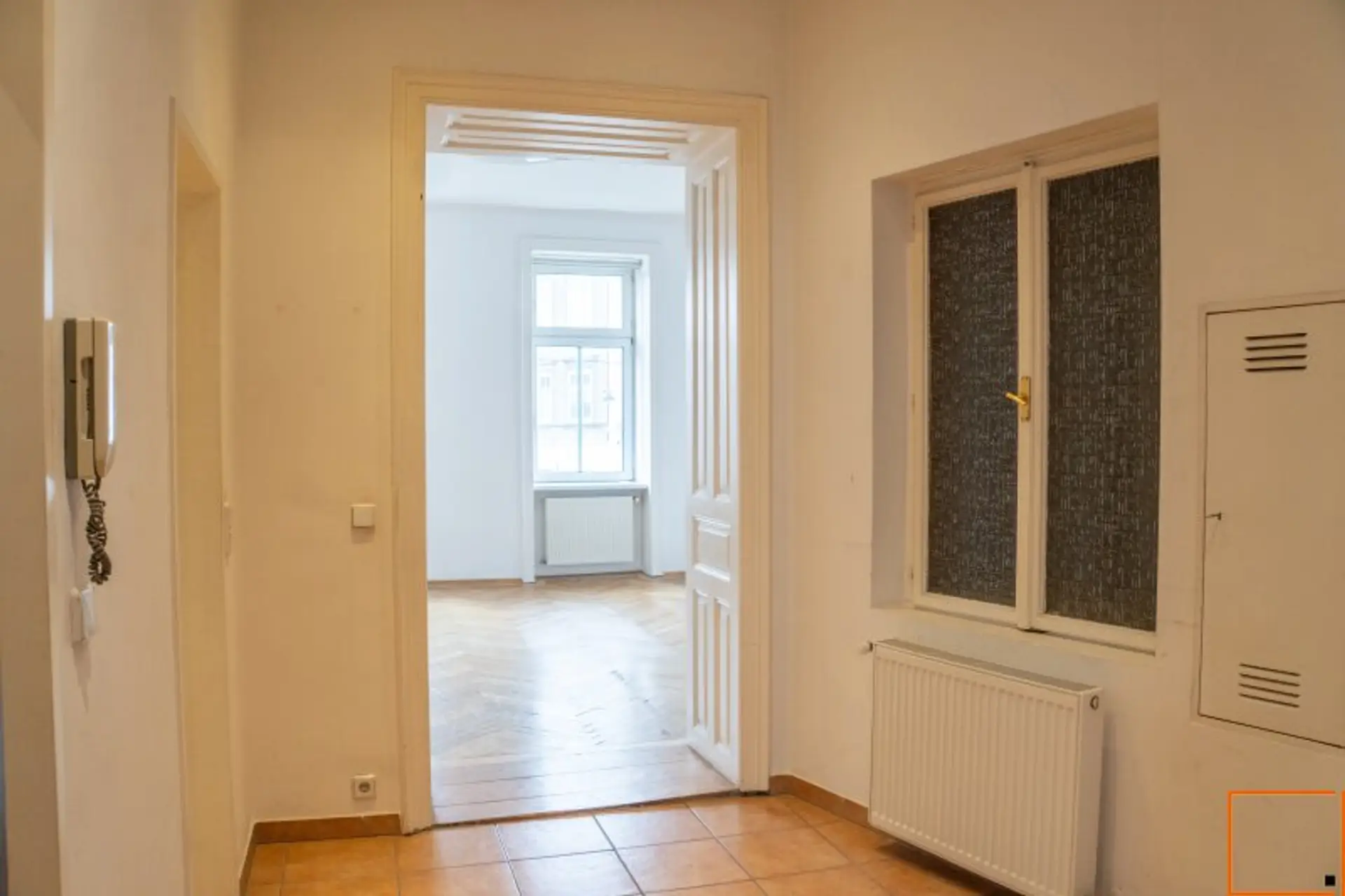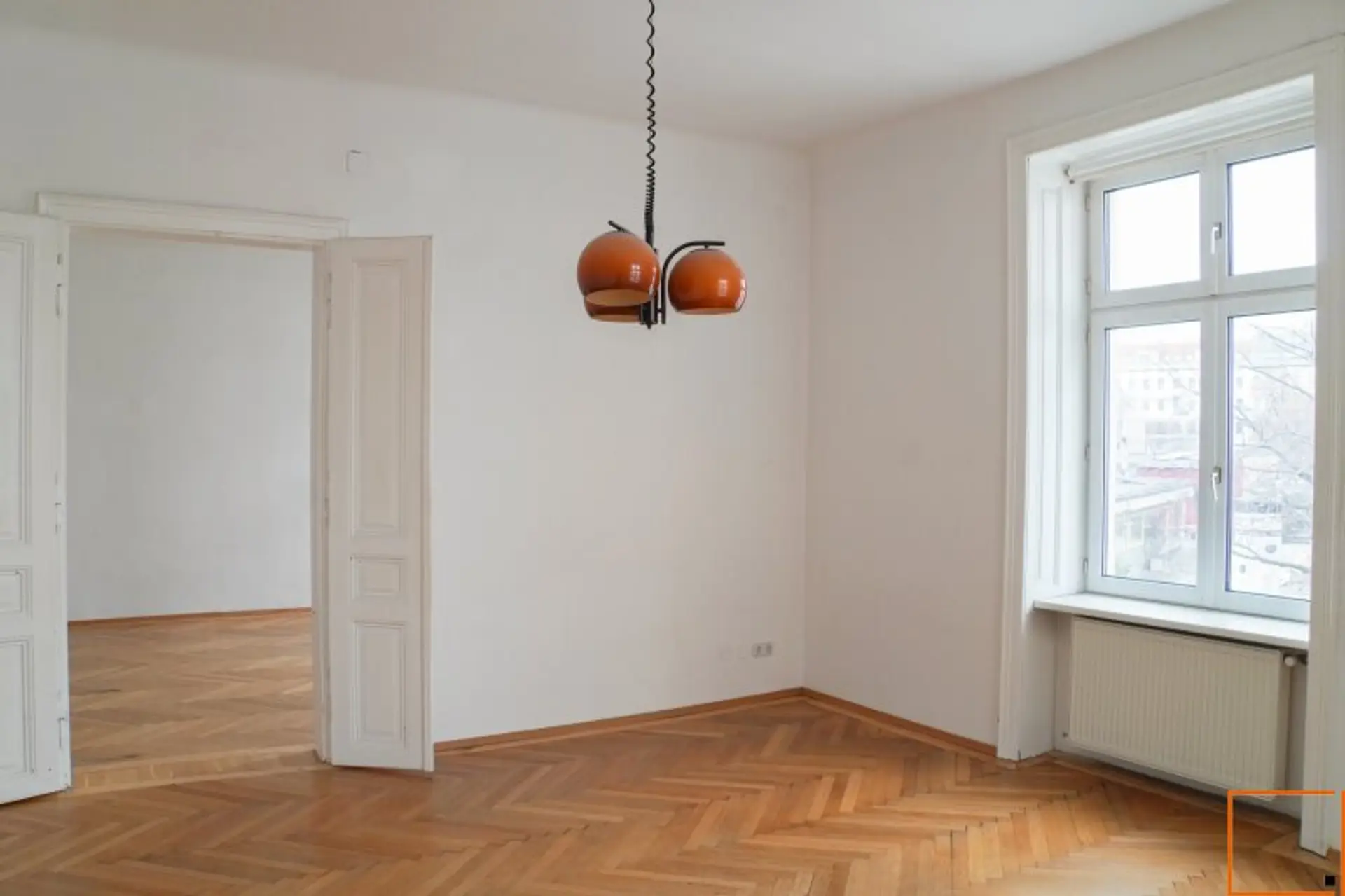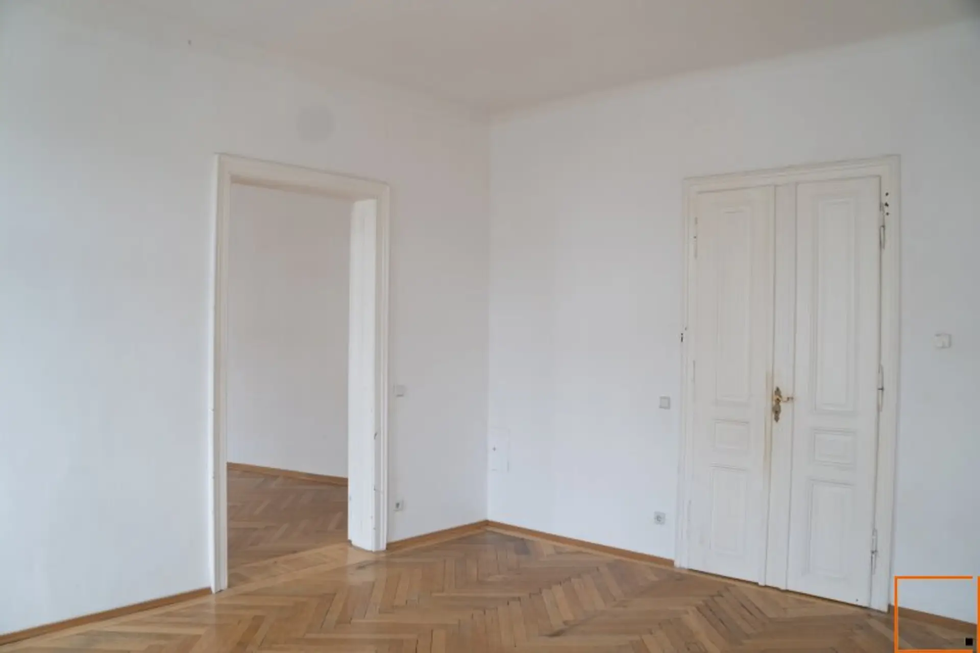 Diese charmante Eckwohnung befindet sich im 1. Stock eines Hauses aus dem Jahr 1918. Das absolute Herzstück der Immobilie sind die beiden großzügigen, westseitig ausgerichteten Haupträume. Hier erwartet Sie jenes authentische Altbau-Gefühl, das in Wien so begehrt ist: Das wunderschöne Fischgrätparkett sorgt in Kombination mit den originalen, weißen Flügeltüren für ein überaus elegantes und harmonisches Wohnambiente. Durch die großen Fensterflächen und die Ecklage genießen Sie hier besonders am Nachmittag eine herrliche Lichtstimmung.