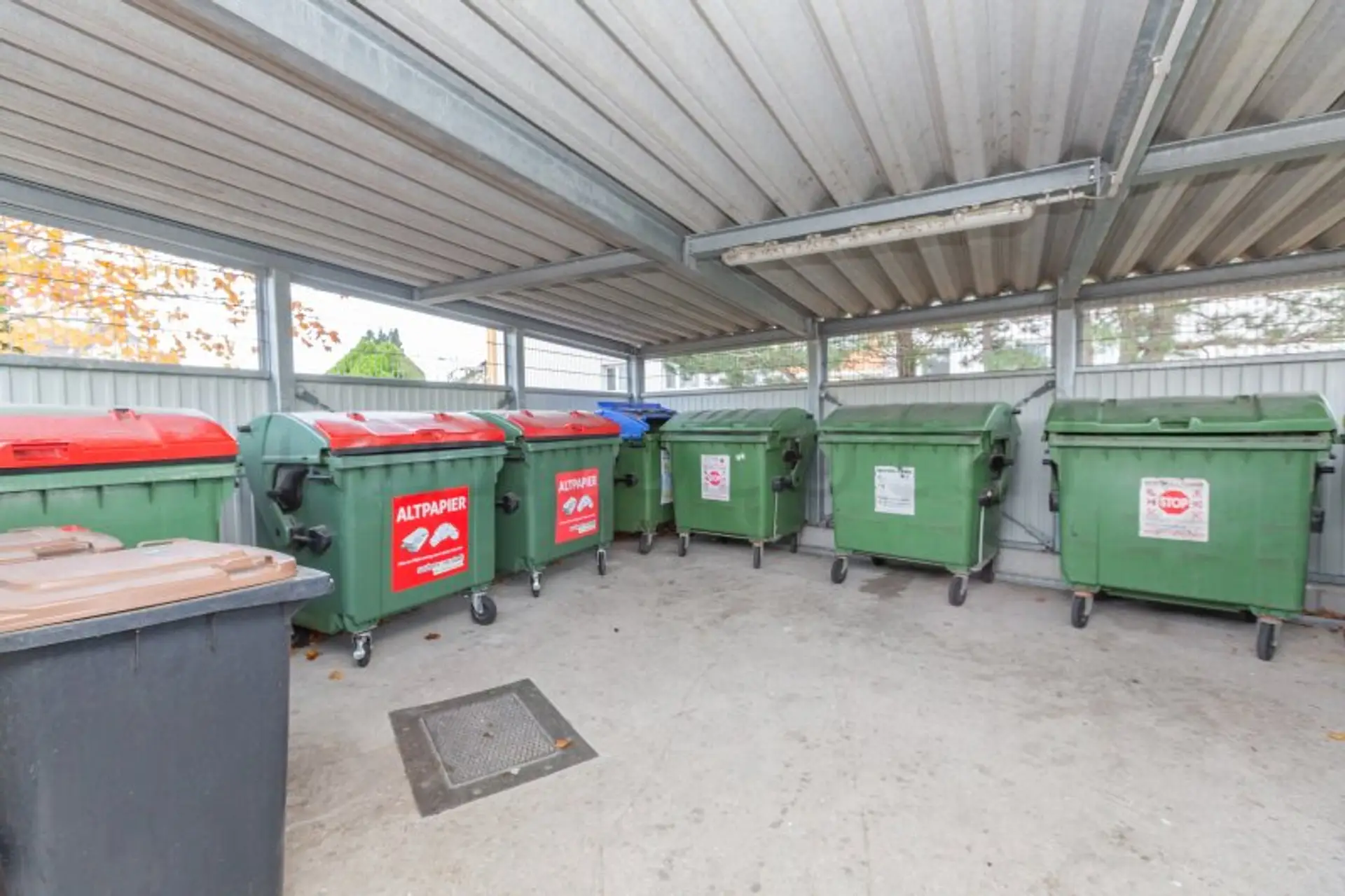 Zwischen Wohnhaus und Garage befinden sich 17 im Miteigentum stehende Stellplätze, die ausschließlich an Miteigentümer vermietet werden (monatlich netto EUR 10,89). Aktuell sind sämtliche Parkplätze vergeben. Interessenten können sich in die Warteliste eintragen lassen.