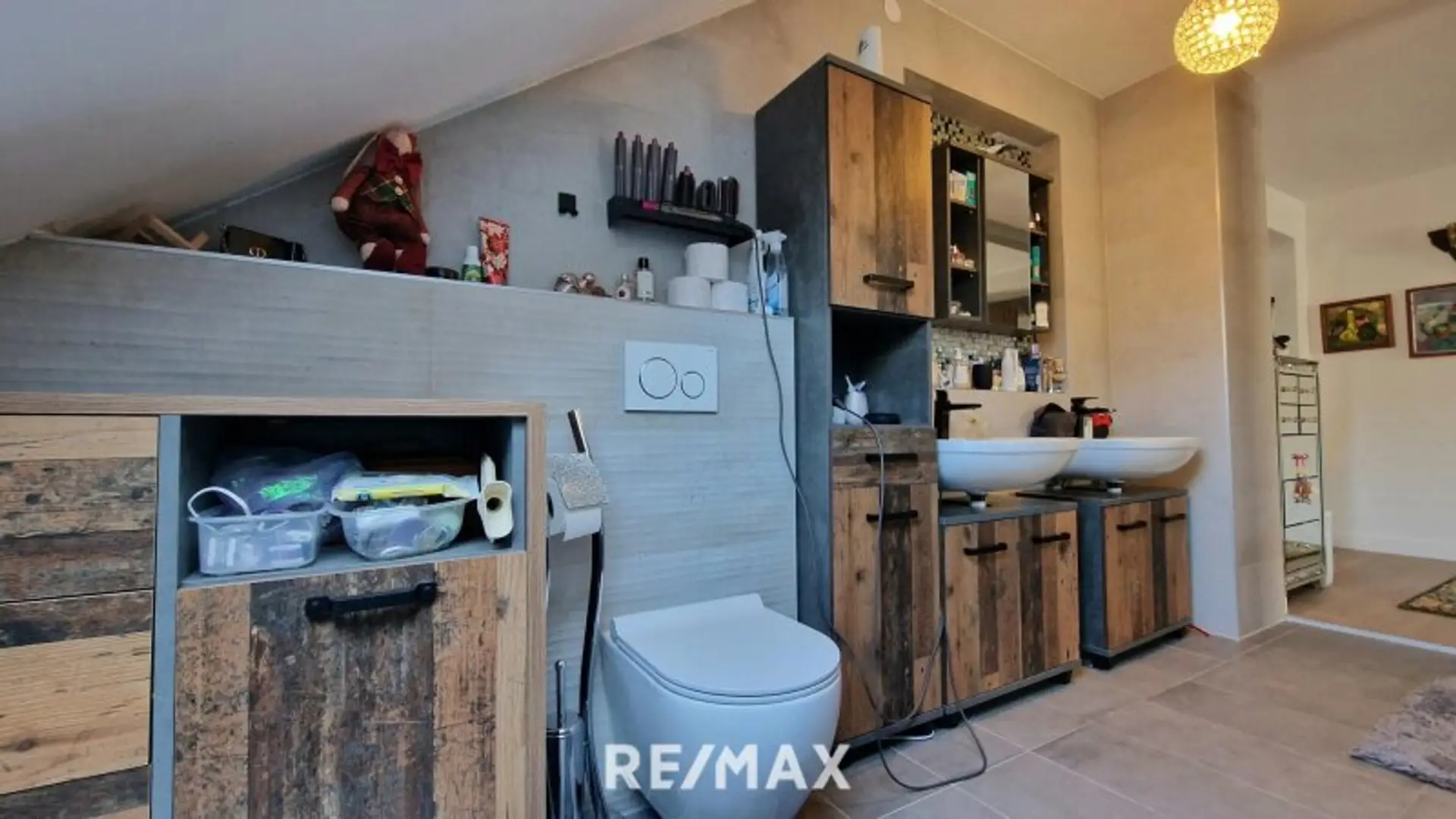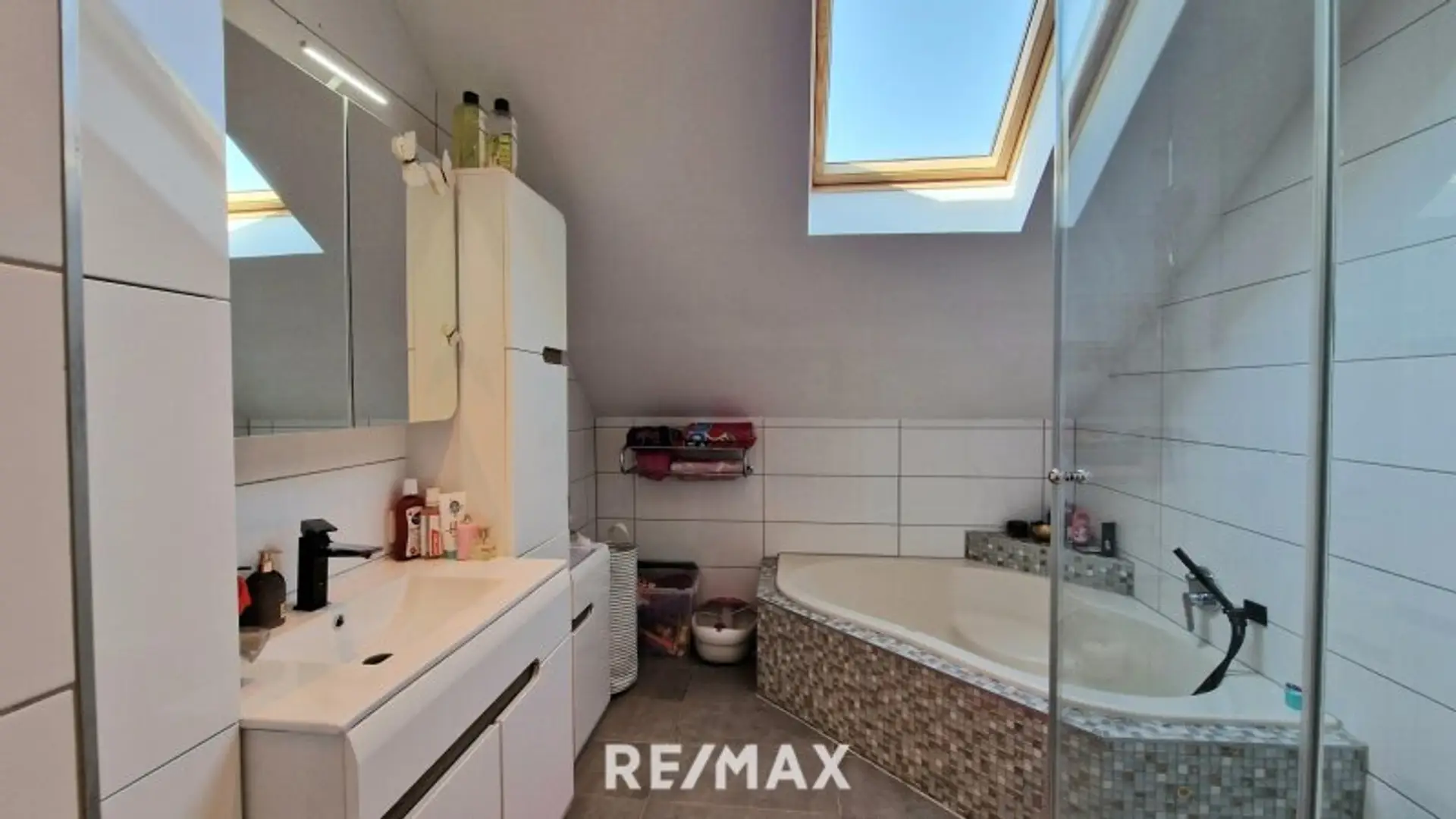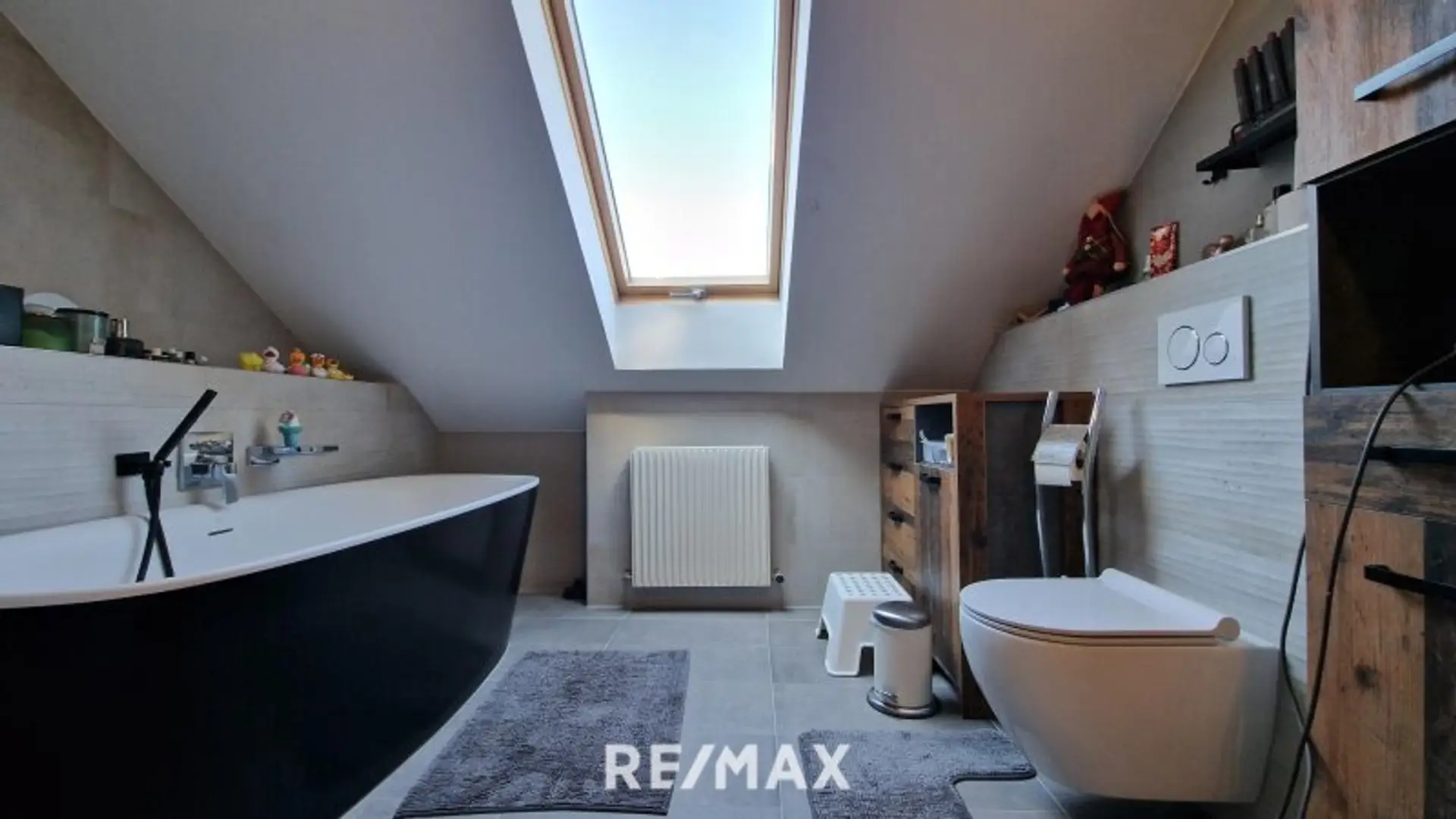 - Kinderschlafzimmer mit eigenem Bad mit Wanne, Dusche, WC und Velux-Dachbalkon