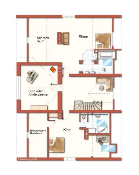 - Elternschlafzimmer mit Schrankraum und Bad mit Wanne, Dusche, WC