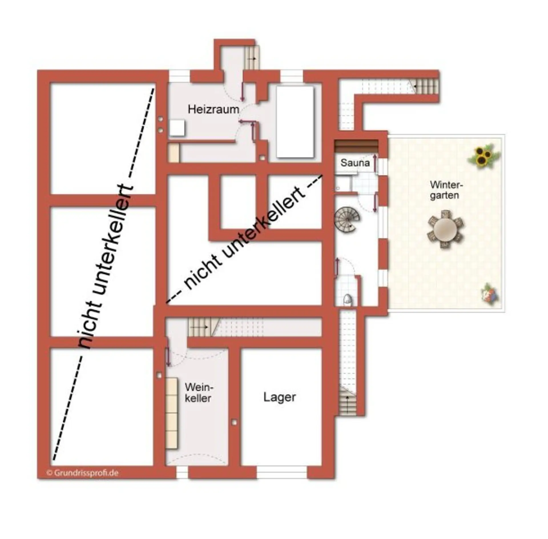 - Sauna, Dusche, WC und Ausgang zum unter der Terrasse liegenden Wintergarten