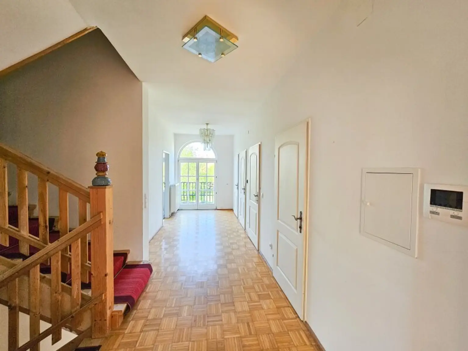 Im Obergeschoss befinden sich drei sehr helle Zimmer, zwei davon sind nach Süden orientiert, eines blickt in den ruhigen Gartenbereich. Darüber hinaus stehen zwei Bäder, ein separates WC sowie – analog zum Erdgeschoss – eine derzeit als Schrankraum genutzte, Aufzugsvorbereitung zur Verfügung. Weiters befinden sich im Obergeschoss zwei Balkone.