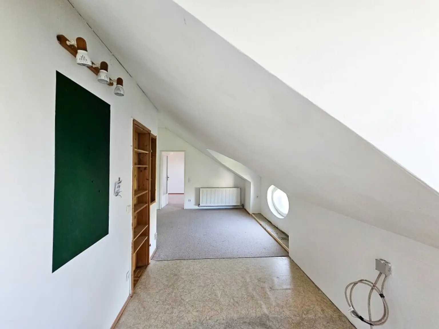 Das Dachgeschoss bietet grundsätzlich eine sehr flexible Raumgestaltung. Aktuell stehen hier drei weitere Zimmer zur Verfügung, eines davon mit vorbereiteten Küchenanschlüssen, sowie ein zusätzliches Badezimmer mit Dusche und WC. Darüber hinaus eröffnet der Dachbereich weiteres Potenzial für individuelle Wohn- oder Nutzungskonzepte.