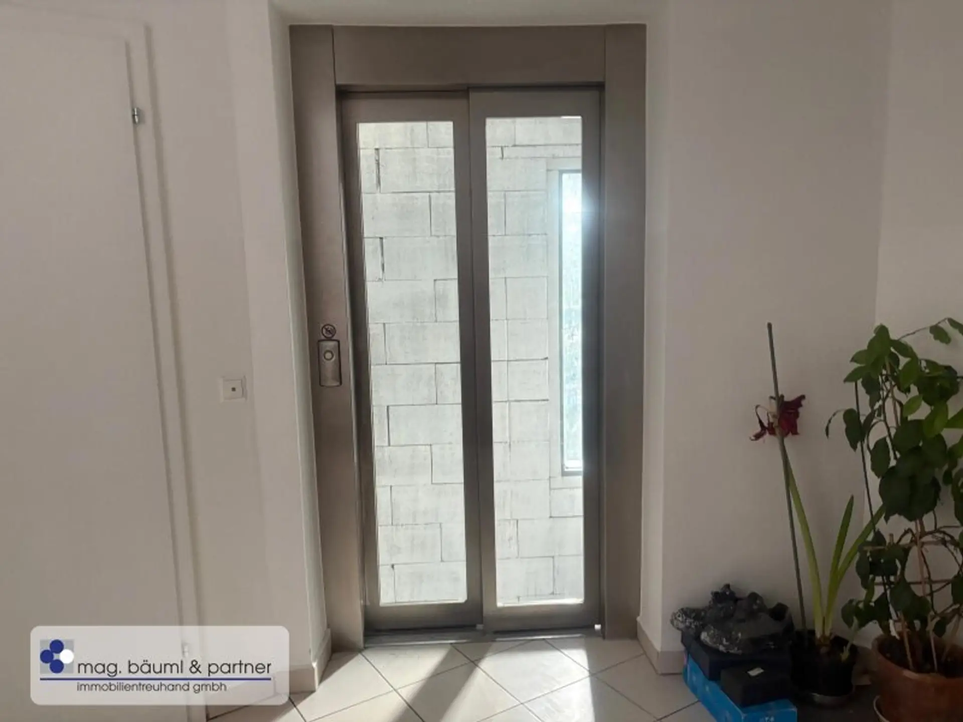 Mit dem Lift geht es in das 1 Dachgeschoss . Durch den geräumigen Vorraum, der Platz für Kästen und Schuh kasterln bietet kommt man in die Wohnküche .