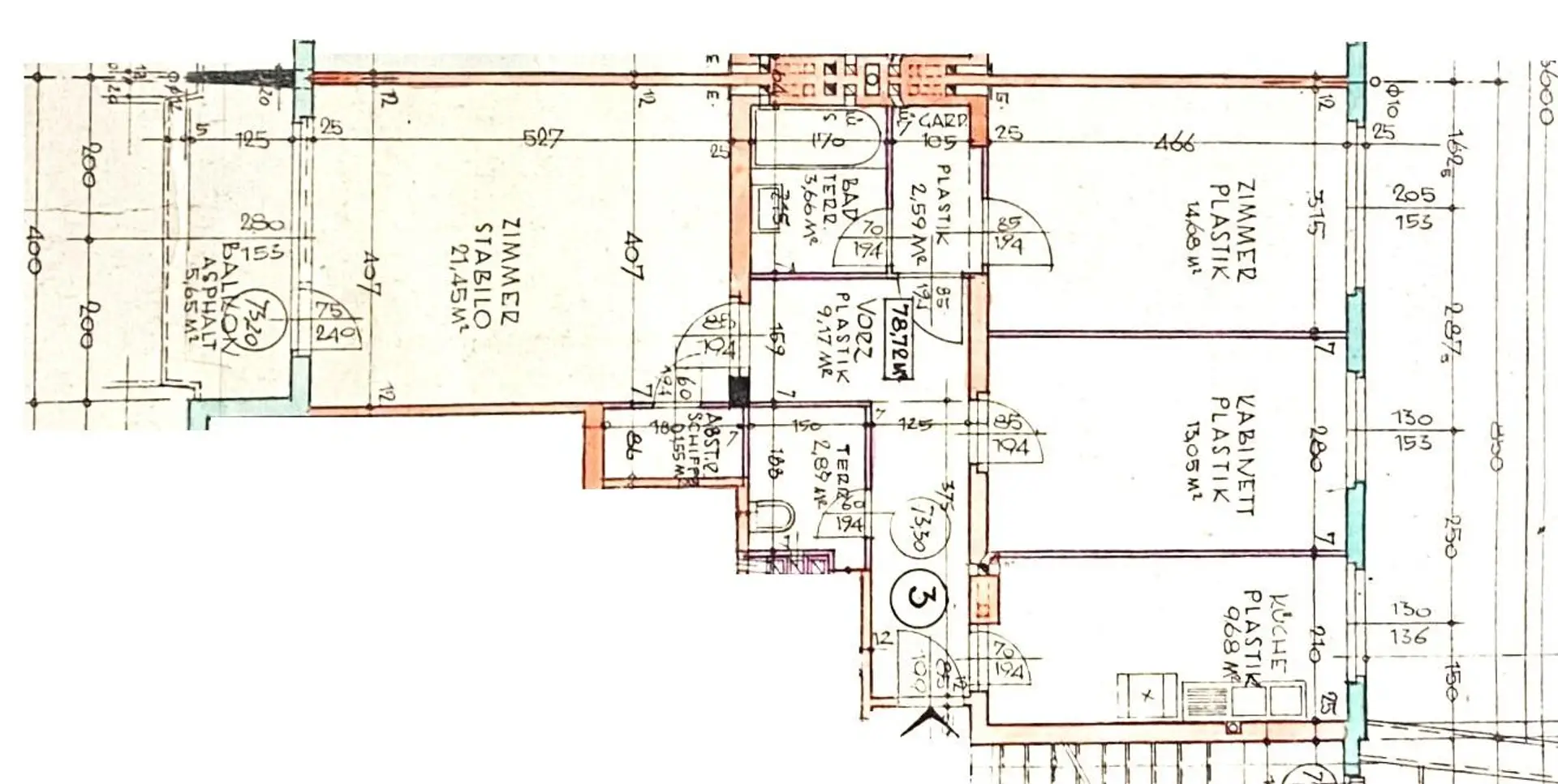 Die Wohnung hat eine Fläche von ca. 82 m² inkl. ca. 3 m² Loggia; die Freifläche hat in Summe ca. 6 m².