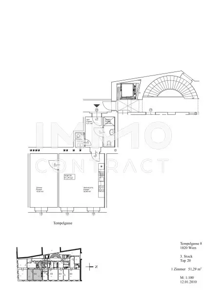 Die Wohnung liegt im 3. Liftstock und befindet sich nur wenige Meter von der U1-Station Nestroyplatz entfernt. Somit finden sich auch zahlreiche Restaurant, Cafés und Supermärkte in unmittelbarer Umgebung.