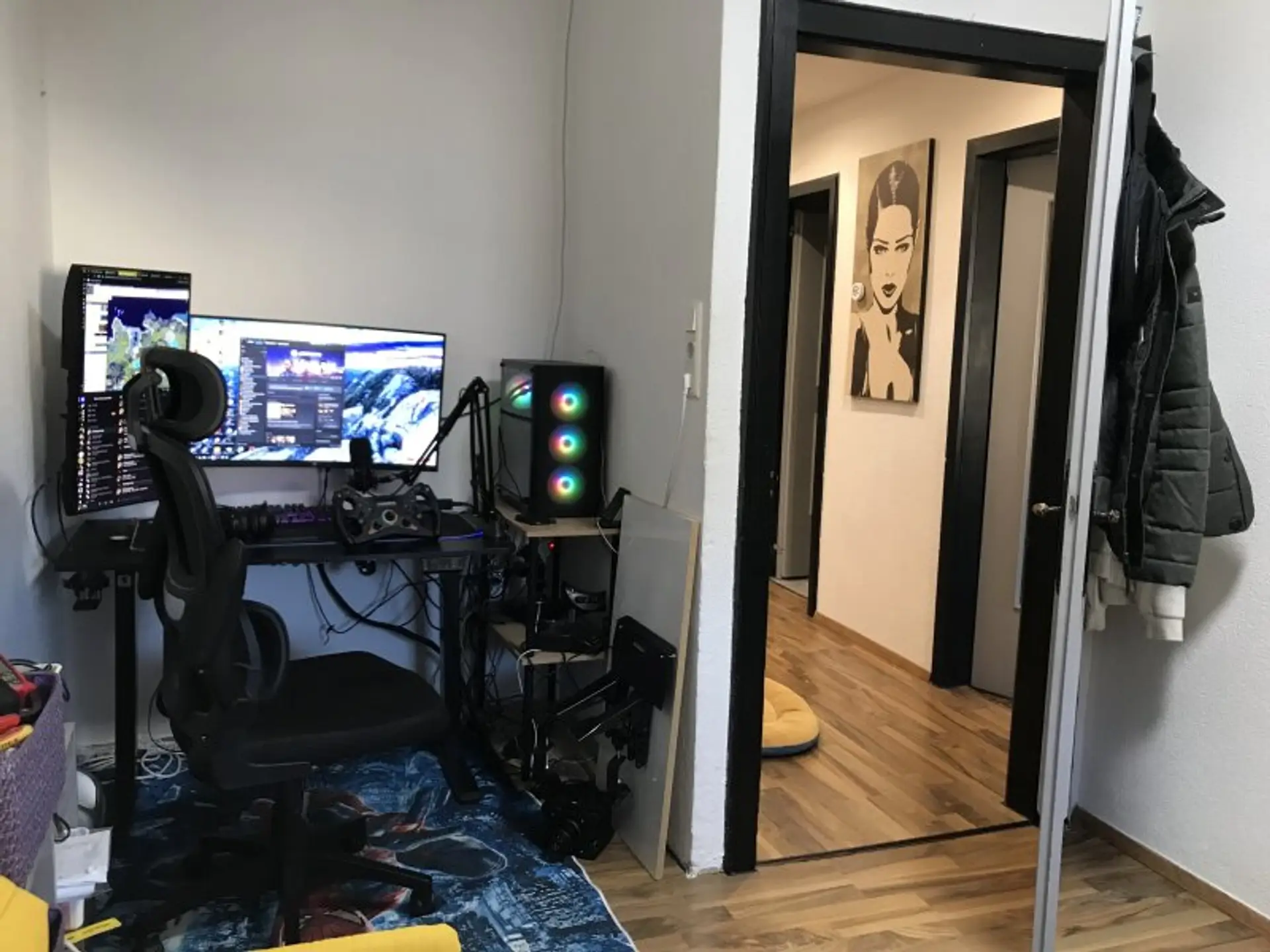 - Helles Badezimmer mit Dusche, WC und Waschmaschinenanschluss