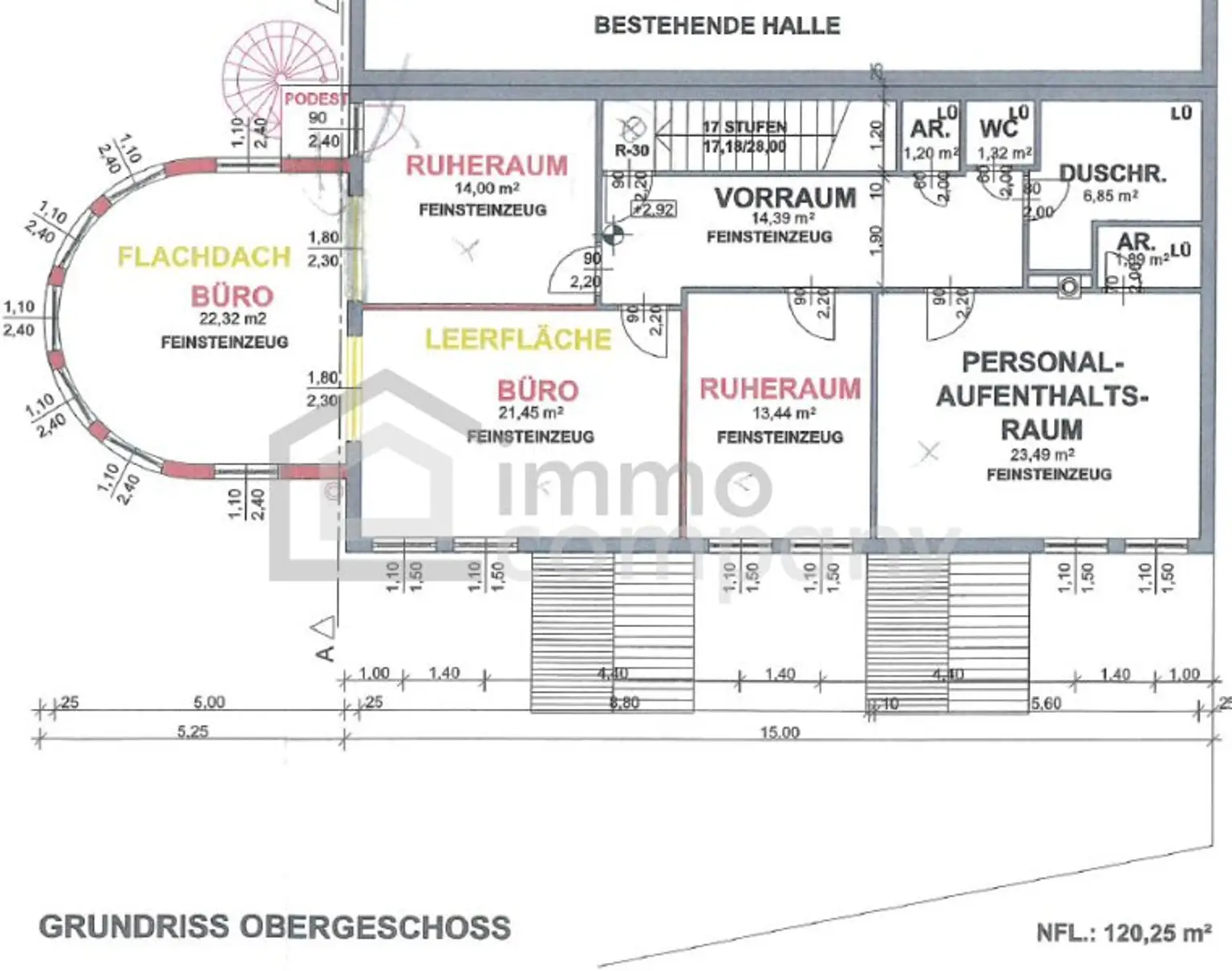 Das Büro befindet sich im ersten Stock ohne Lift, hat einen separaten Eingang und ist über eine Außentreppe erreichbar. Da die Räumlichkeiten anderweitig genutzt wurden, würde der Eigentümer etwaige Renovierungen (Ausmalen, Boden, 2te Toilette...) nach den Wünschen des neuen Mieters machen.