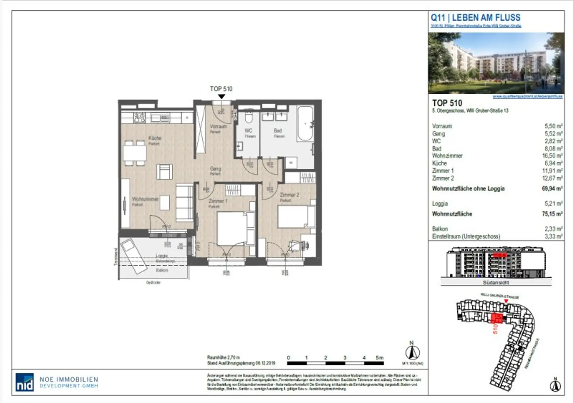 Nutzfläche: ca. 75,15 m² inkl. Loggia + ca. 2,33 m² Balkon + Einlagerungsraum, 10 Jahre befristet zu mieten, Kündigungsfrist 3 Monate